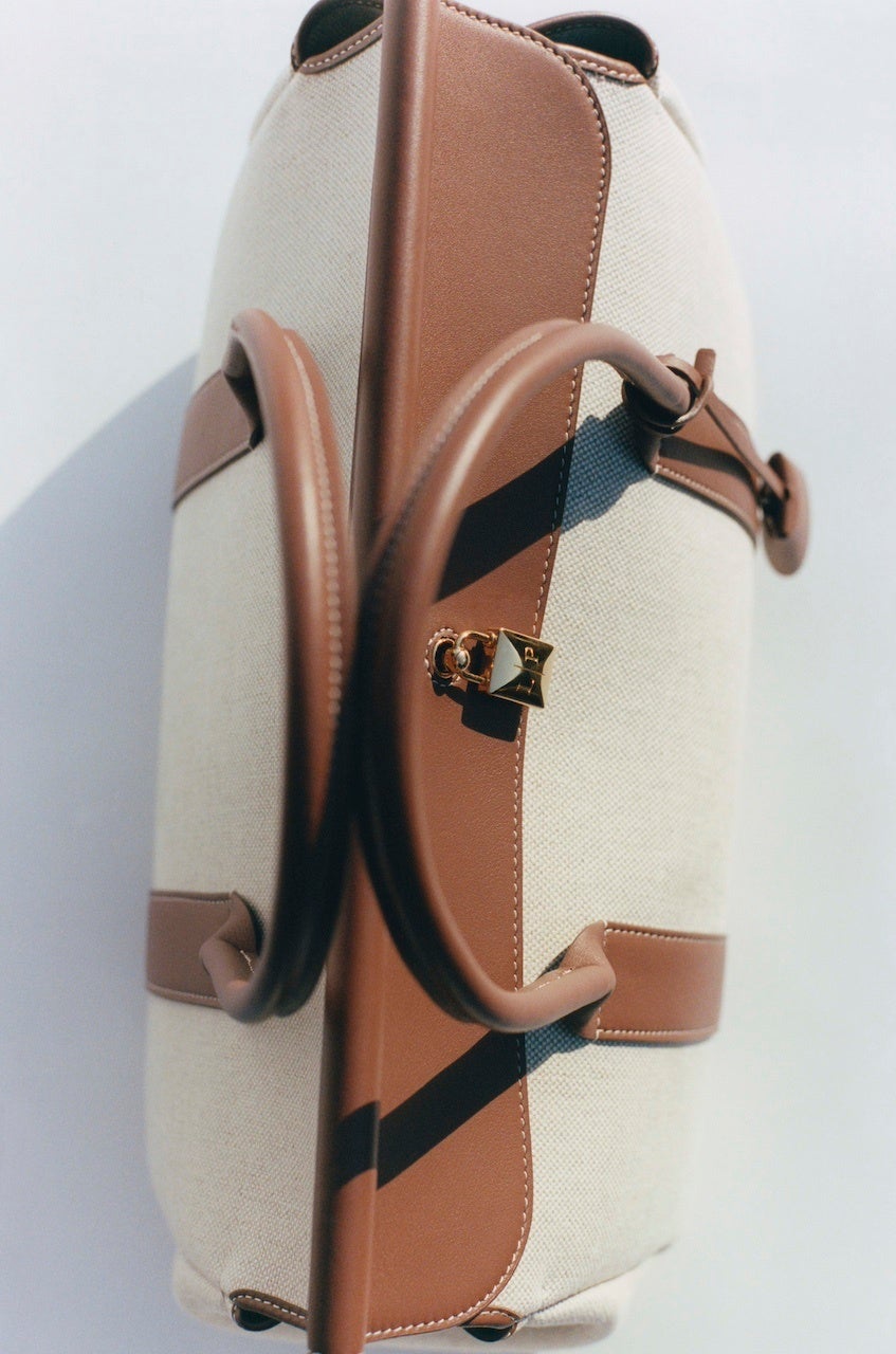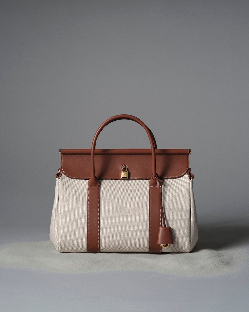 ロロ・ピアーナは、2024年秋冬コレクションにて新作バッグ、《ルーム》を発表いたします。100年にわたるテキスタイルの伝統と独自のノウハウにより、ブランドの歴史、職人技、上質なファブリックを象徴するバッグが誕生しました。フラップの下の金属バーは、織機のバーに布地がかかる様子や、メゾンの熟練職人の工房を想起させます。仕事にもレジャーにも使える収納力たっぷりの万能なトートバッグである《ルーム》は、必需品などを収納できるタイムレスで実用的、モダンなシルエットのバッグです。