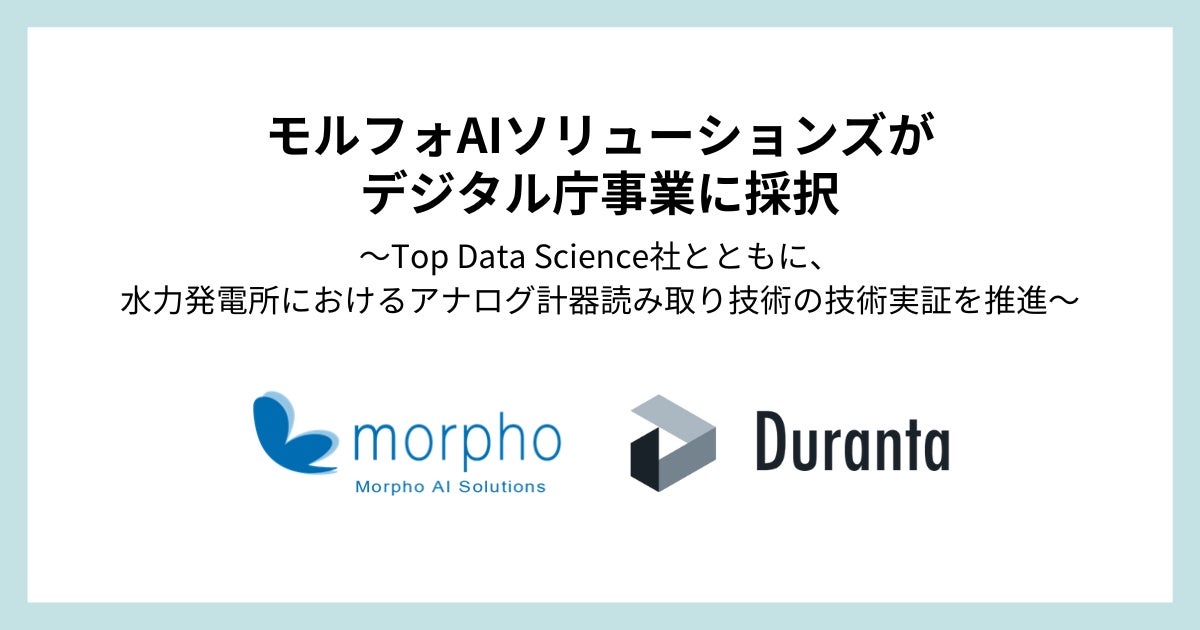 モルフォAISが提案するシステムでは、AIカメラソリューション「みまもりAI Duranta」と、Top Data Science社が保有する最新の画像処理技術を活用した「アナログ計器読み取り技術」を組み合わせることで、大分県所管の水力発電所において、各種アナログ計器を遠隔で読み取り可能かを検証します。これによって、アナログ規制の見直しへの貢献を目指します。