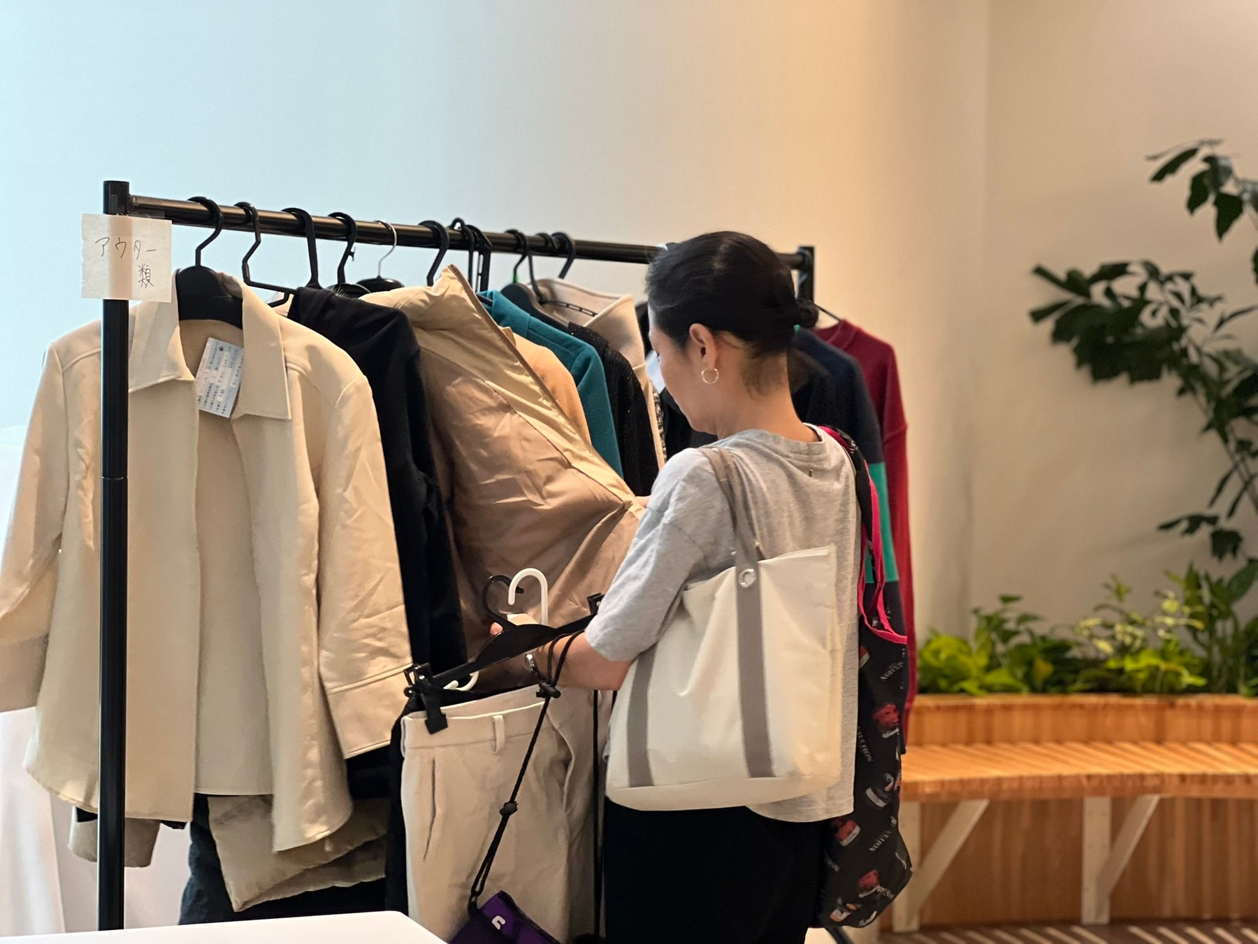 お持ちいただいた服は、”服の状態と想い”をタグに書いて、ご自身でラックにかけていただくセルフスタイルです。