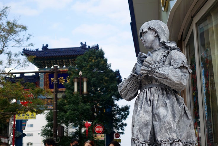 スタチュー(人間彫刻)は、日本ではまだ馴染みが薄いものですが、街並みに溶け込み地域の魅力を引き出すことができる点で、歴史的な街並みを残す日本大通りなどの横浜中心部によくなじむパフォーマンスです。比較的狭い場所でも実施可能である、大きな音を出さない、火や水を使用しないといった点で、ミュージアムとも相性がいいという特徴があります。また、基本的に声を出さずお客さまとも接触しない点で、ポスト・コロナ時代にふさわしいパフォーマンスだといえます。