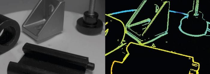 『Topaz5D』は、鮮明な2D画像 (HD:1,920×1,080) と3D深度データを同時にリアルタイムで提供可能な、TELEDYNE e2v社独自のイメージセンサです。3D深度データ(被写体との距離を求めるデータ)は、TELEDYNE e2v社が提供するSDKにより取得可能で、OpenCLまたは CUDA対応のライブラリを用意しております。2D画像とともに3D深度データを取得できることで、被写体との距離が計測可能となりロボティクスなどへの応用が期待されます。