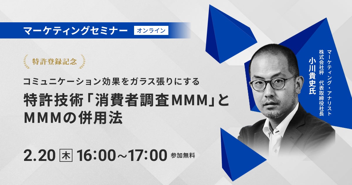 特許技術「消費者調査MMM」とMMMの併用法』を2025年2月20日(木)16時から開催いたします。