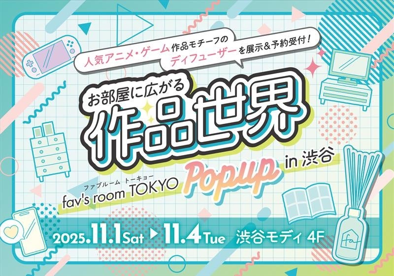 人気アニメ・映画・ゲームのキャラクターをモチーフにしたディフューザーを、発売前にいち早くご覧いただけるポップアップストアを開催いたします。会場では、香り・デザイン・質感など、五感で商品の世界観を体感いただけます。さらに、fav's room TOKYO直販サイト限定のノベルティも実際にご確認いただける特別な機会です。その他、fav's room TOKYOの先行商品も販売予定です。ぜひこの機会にお立ち寄りください。