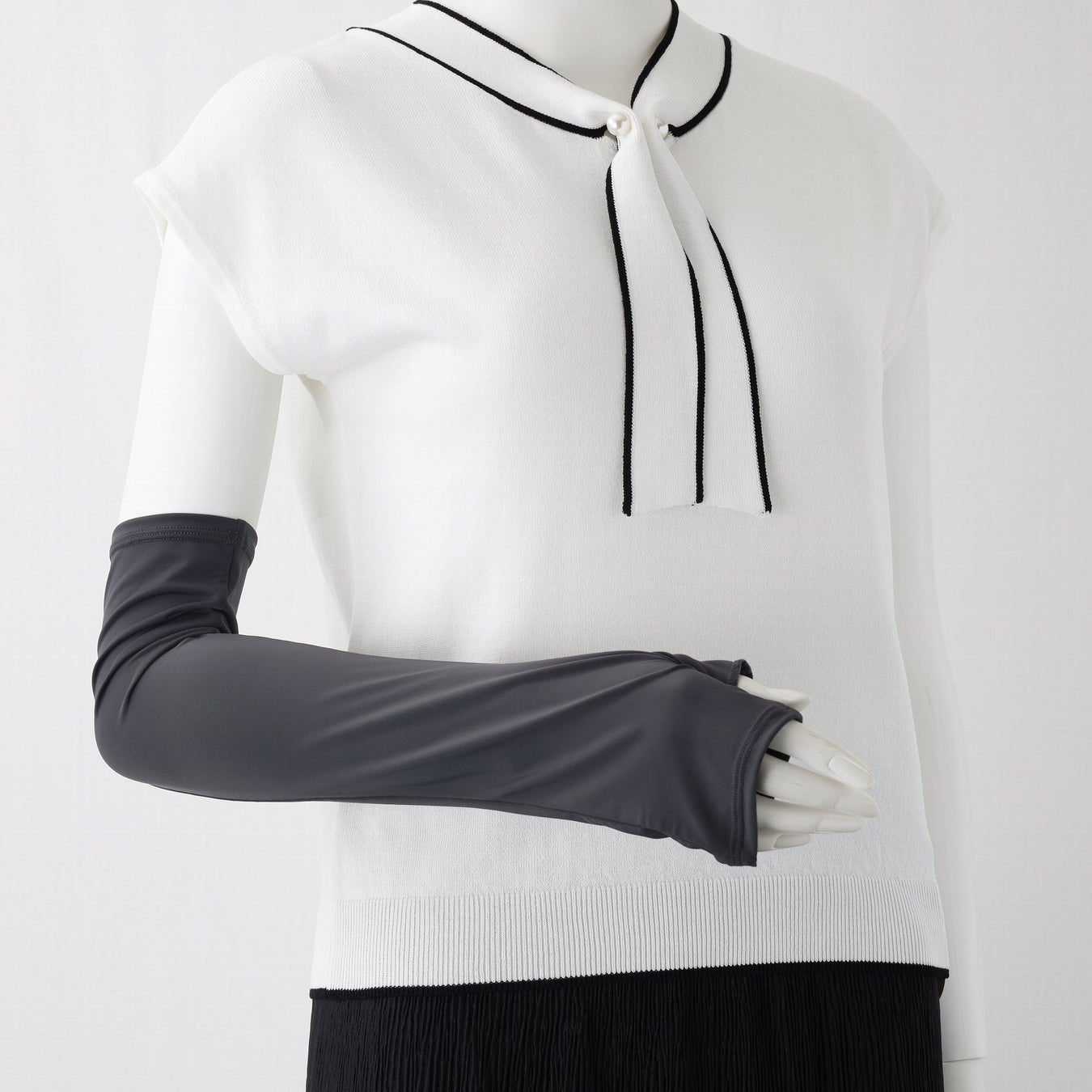 特殊な冷感素材で実感できる冷たさ、紫外線をカットするUPF50+、抗菌防臭機能で毎日清潔にお使いいただけるアームカバーです。 今年は吸水速乾機能を追加してサラサラしたつけ心地を実現しました。 手首から腕までをガードするタイプに加え、手元までカバーするタイプには「指穴タイプ」と「指付タイプ」の 2種類をご用意し、用途によりお選びいただけます。