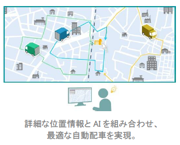 ■サービスの特長:ゼンリンの地図データ×AI自動配車で業務精度を向上