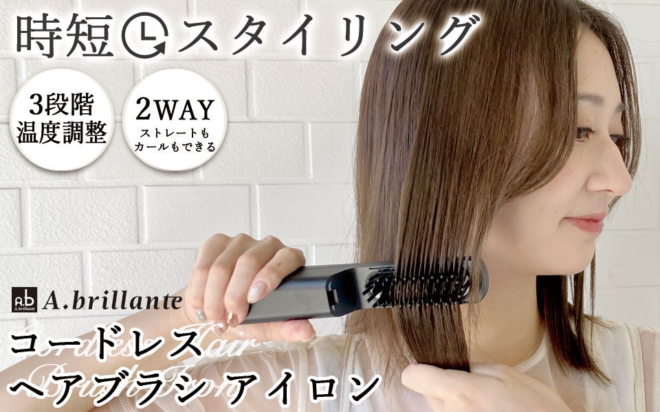 コードレスミニヘアアイロンを販売しているA.brillanteから、使いやすい<ブラシ型のコードレスアイロン>が販売中。