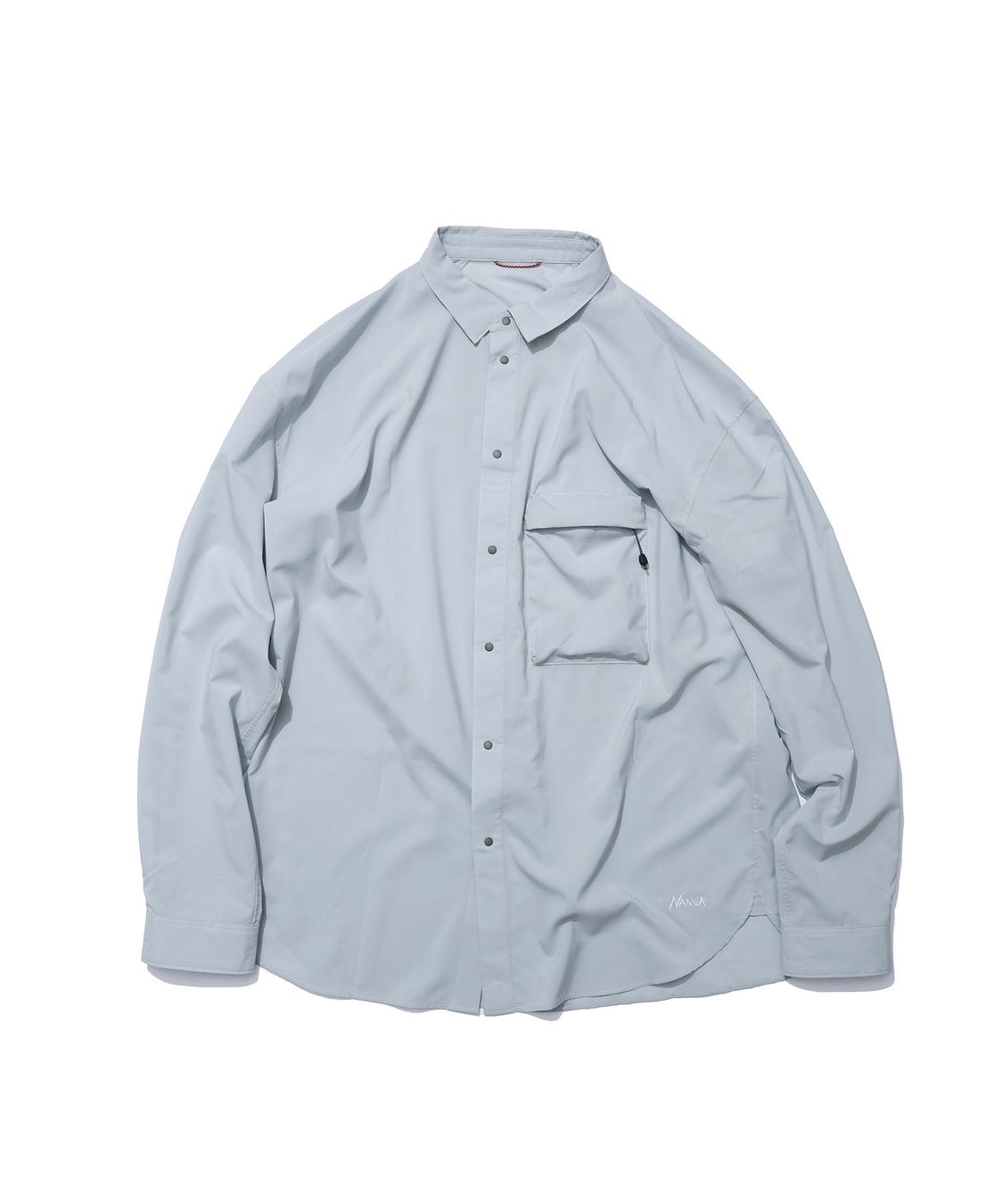 軽量で爽やかな着心地が特徴のポリエステル生地で仕立てた長袖シャツ。フロントの開閉はスナップボタン仕様で、アウトドアシーンでの使用はもちろん、全体がシンプルなので綺麗めカジュアルにも。左胸ポケットにシャツ本体を収納できるようになっています。