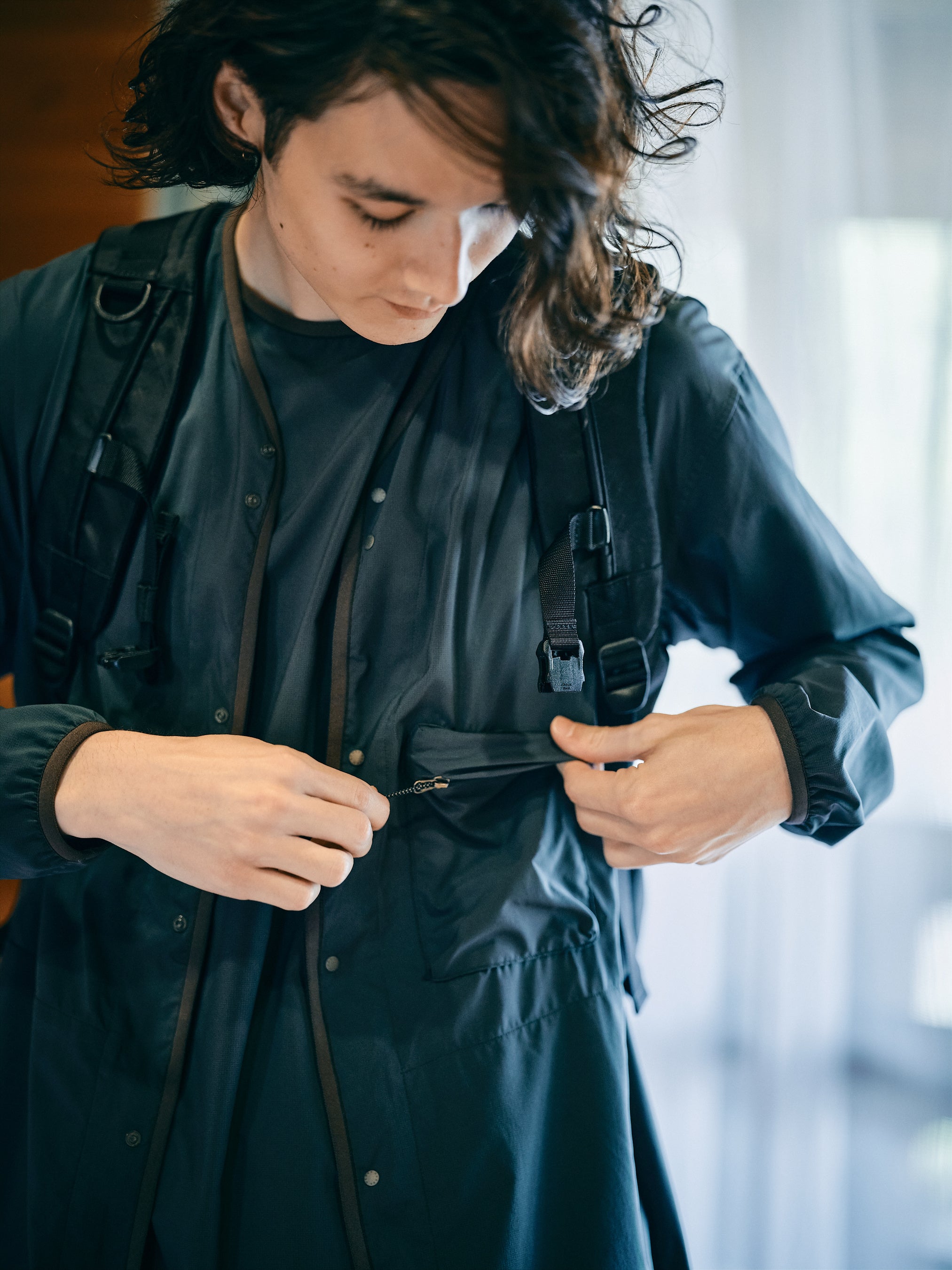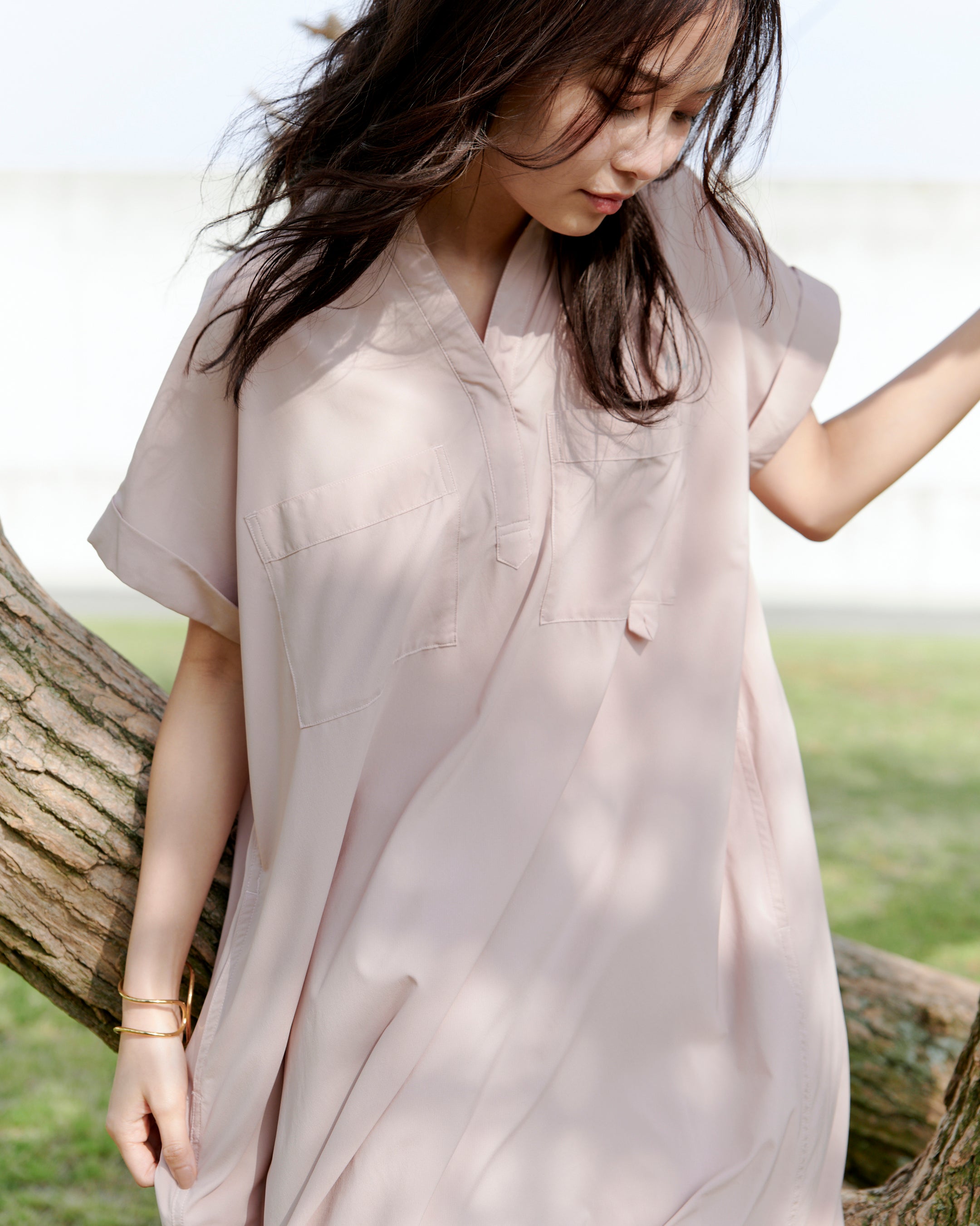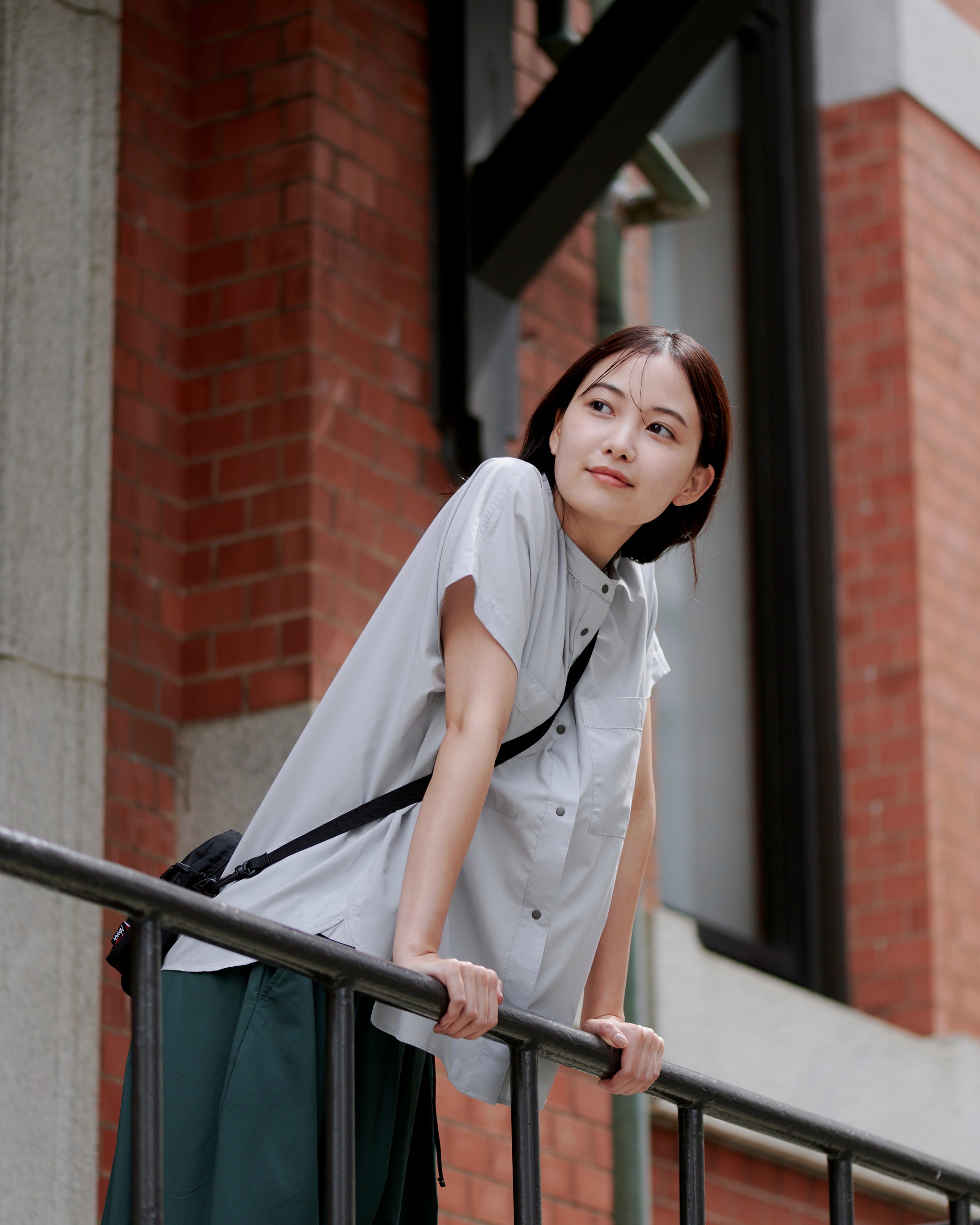 EXCURSIONシリーズでは、SHADOW RIP®の滑らかな表面感に着目し、ワンピースやブラウスなど、ウィメンズアイテムをラインナップ。たっぷりとした用尺で、そのドレープ性と光沢感を活かしたフレアワンピースとワイドパンツは機能素材を使ったウィメンズウェアの新しい提案となっています。