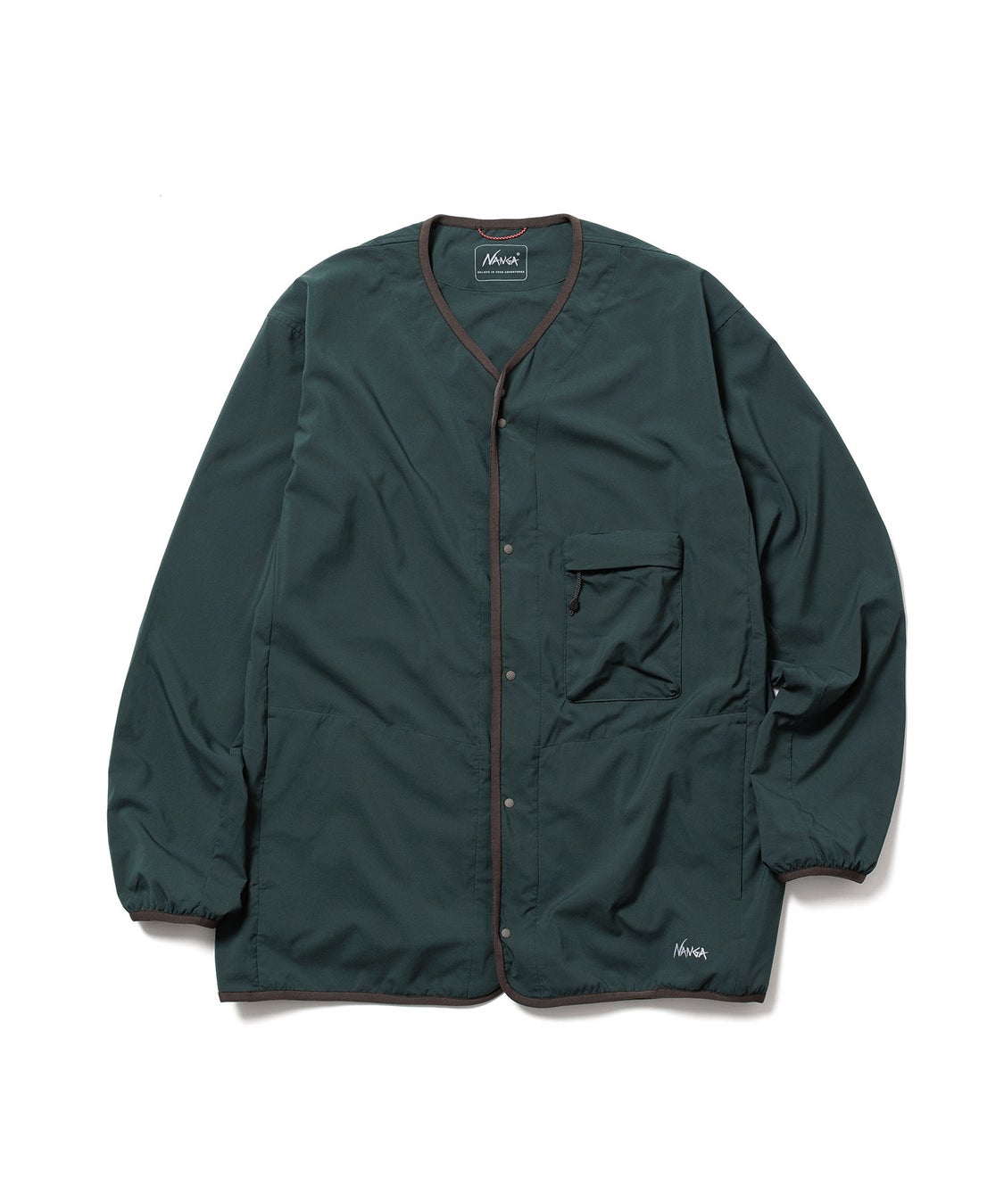軽量でシワが目立ちにくいポリエステル素材を使用したパッカブルシリーズ“PLC EXCURSION”は、出張や旅行にピッタリ。肌寒い時にさっと羽織るのにちょうど良い薄手のカーディガンには左胸にマチのあるポケットがあり、この中に本体全体を収納することができます。