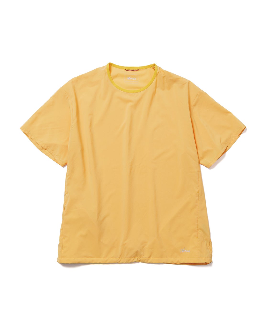 ニットとは異なるドライな着心地が感じられる、ポリエステルの布帛素材を使用したTシャツ。縫い目に沿った腰ポケットに加え、背面にはパッカブル用のファスナーポケットも配置。ゆったりとしたシルエットで、裾はスピンドルで好みの絞り具合に調整できます。