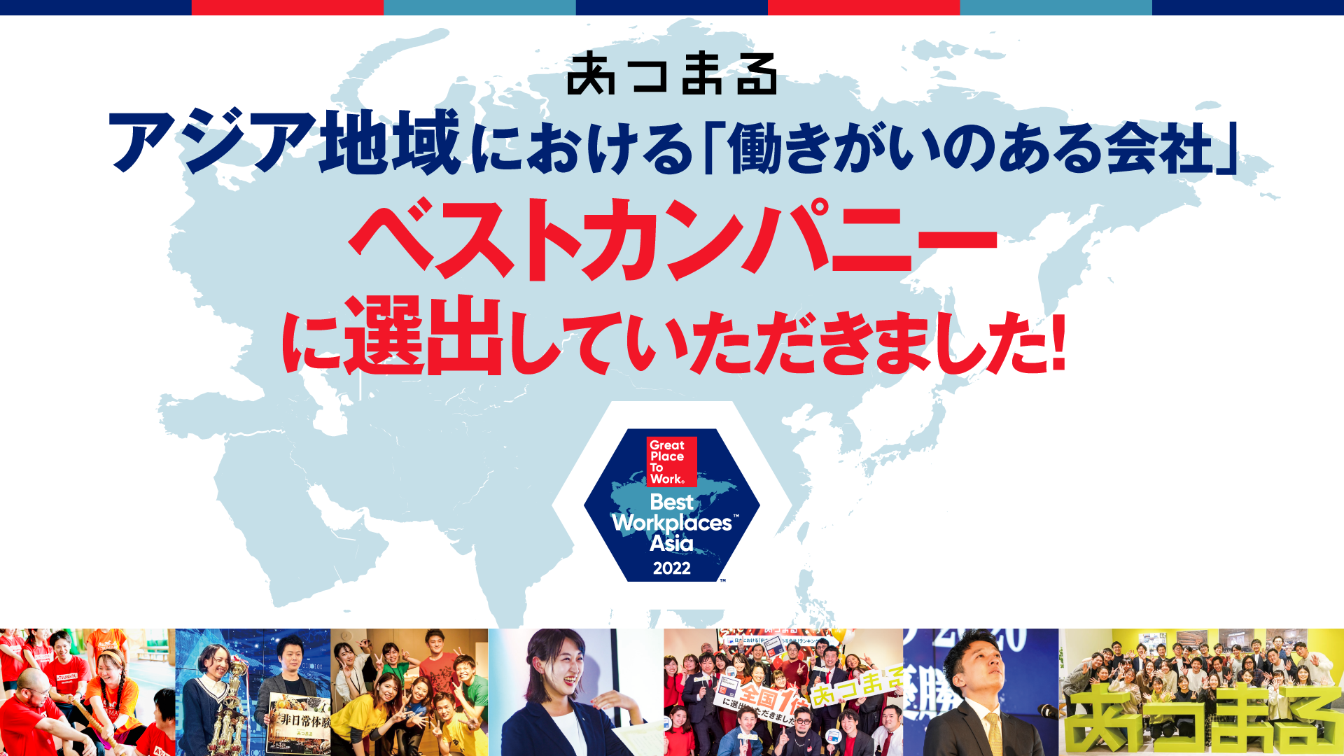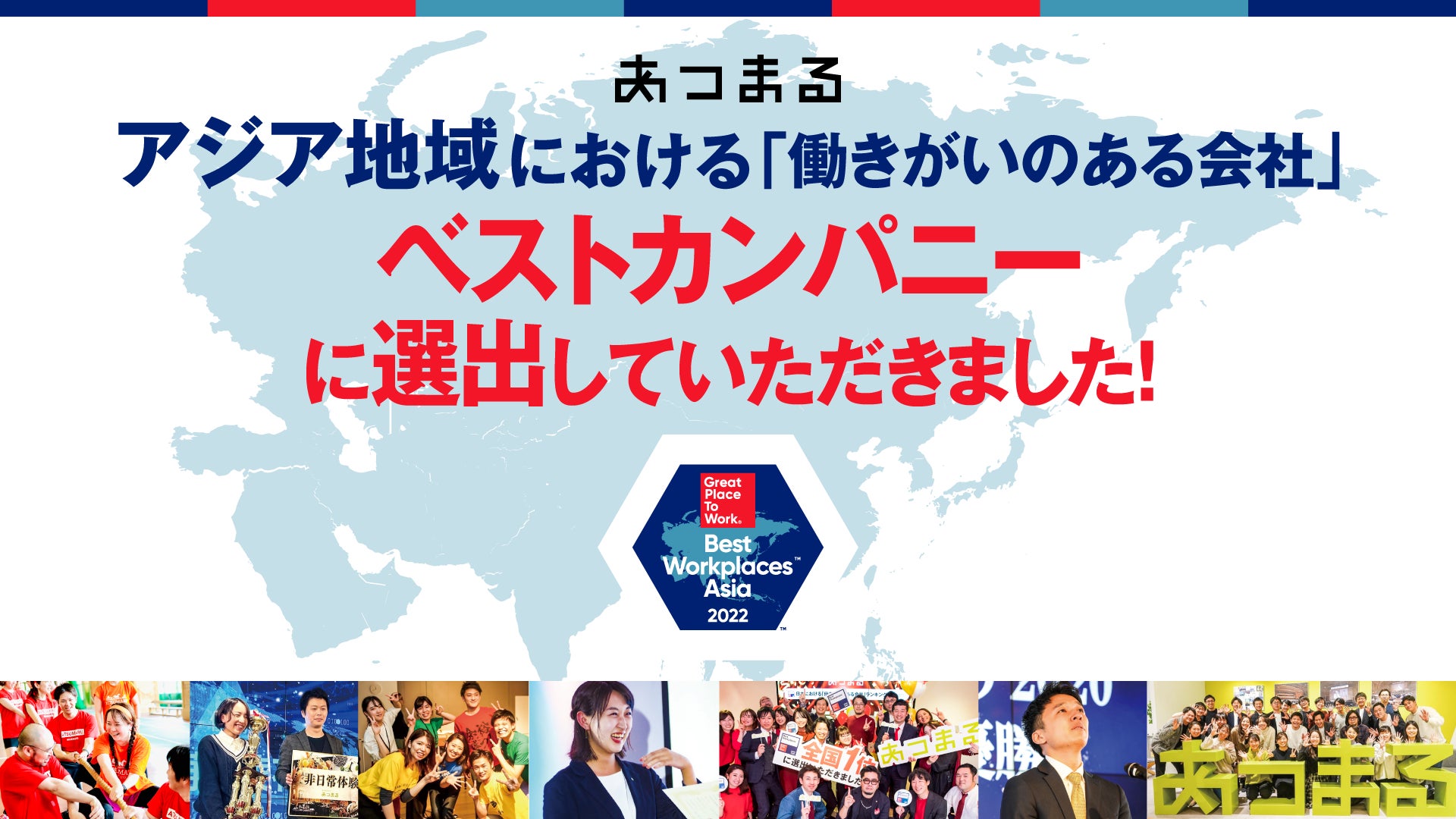 株式会社あつまるは、2022年版アジア地域における「働きがいのある会社」ランキング において、ベストカンパニーを受賞、中小企業部門にて13位に入賞いたしました。