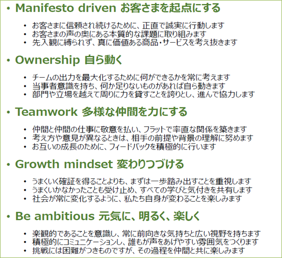 今年度、我々は「ライフネットの生命保険マニフェスト」の実現のために、従業員であるLifenetter(ライフネッター)が大切にする価値観を “Lifenetter Values”としてまとめました。多様な仲間を力にし、チームの出力を最大化するためにできることとして、事業成長を支える優秀な人材の確保のためにも、移転に向けて、また、移転後の更なる飛躍を目指して、準備を進めてまいります。