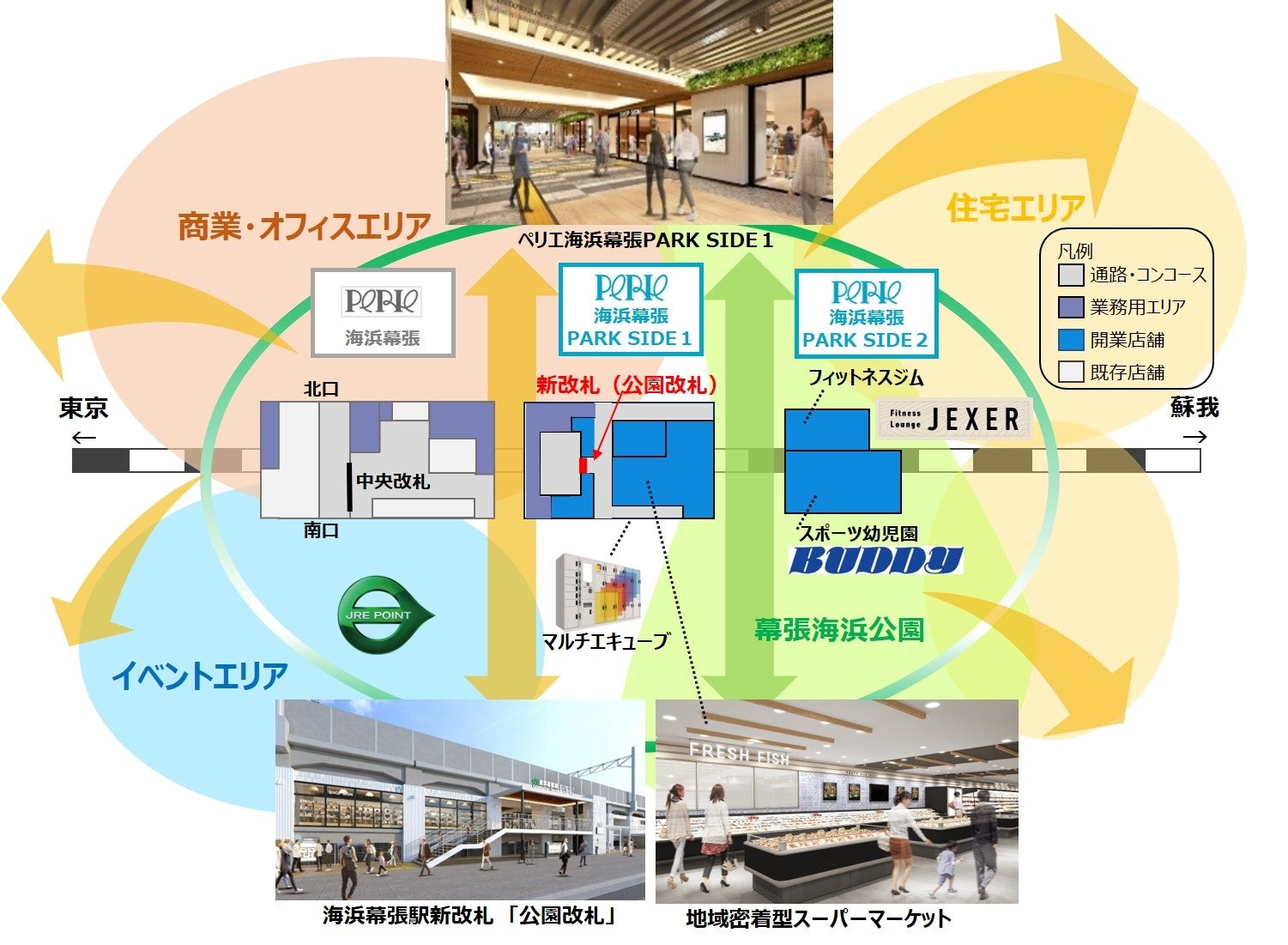 ○株式会社千葉ステーションビルと東日本旅客鉄道株式会社(以下、「JR東日本」)千葉支社は、「Beyond Stations 構想」の一環として、海浜幕張駅において新改札「公園改札」の使用開始にあわせて、「ペリエ海浜幕張」の“新エリア”を開業します。