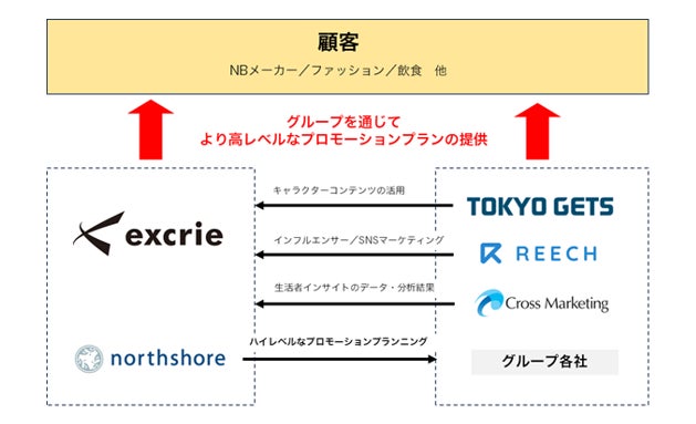 今回の提携に伴い、メディアバイイングやエンタメコンテンツを利用したプロモーションに強みをもつトキオ・ゲッツのノウハウも加え、映像コンテンツ等のクリエイティブにキャラクター(IP)を組み合わせながら、顧客に向けてより幅広いプロモーションプランの提案を可能としていく予定です。