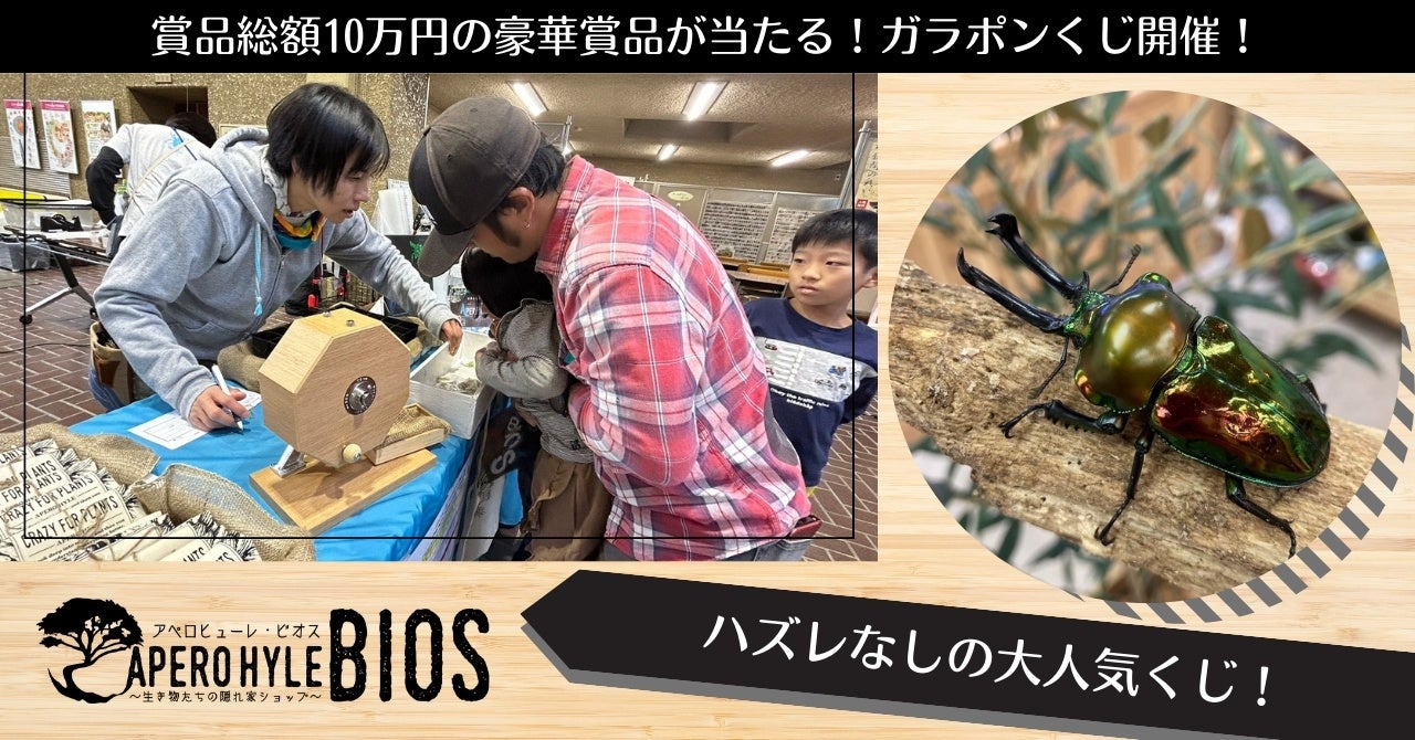 七色に輝く世界一美しい昆虫ニジイロクワガタや注目の新品種アガベ、デザートダイヤなど豪華景品をご用意しています。