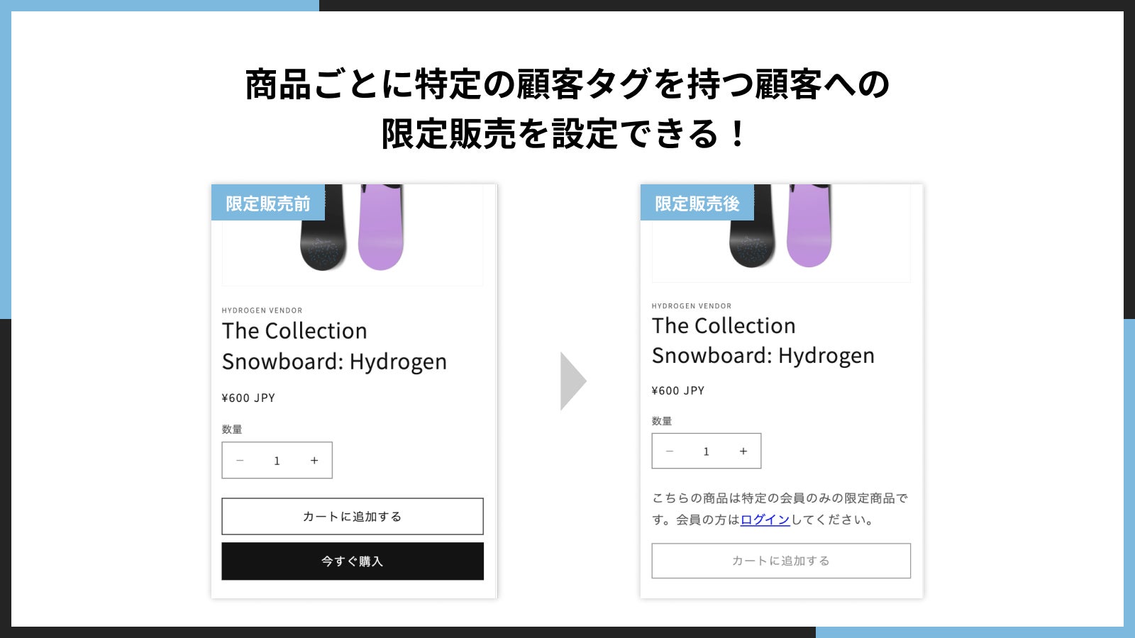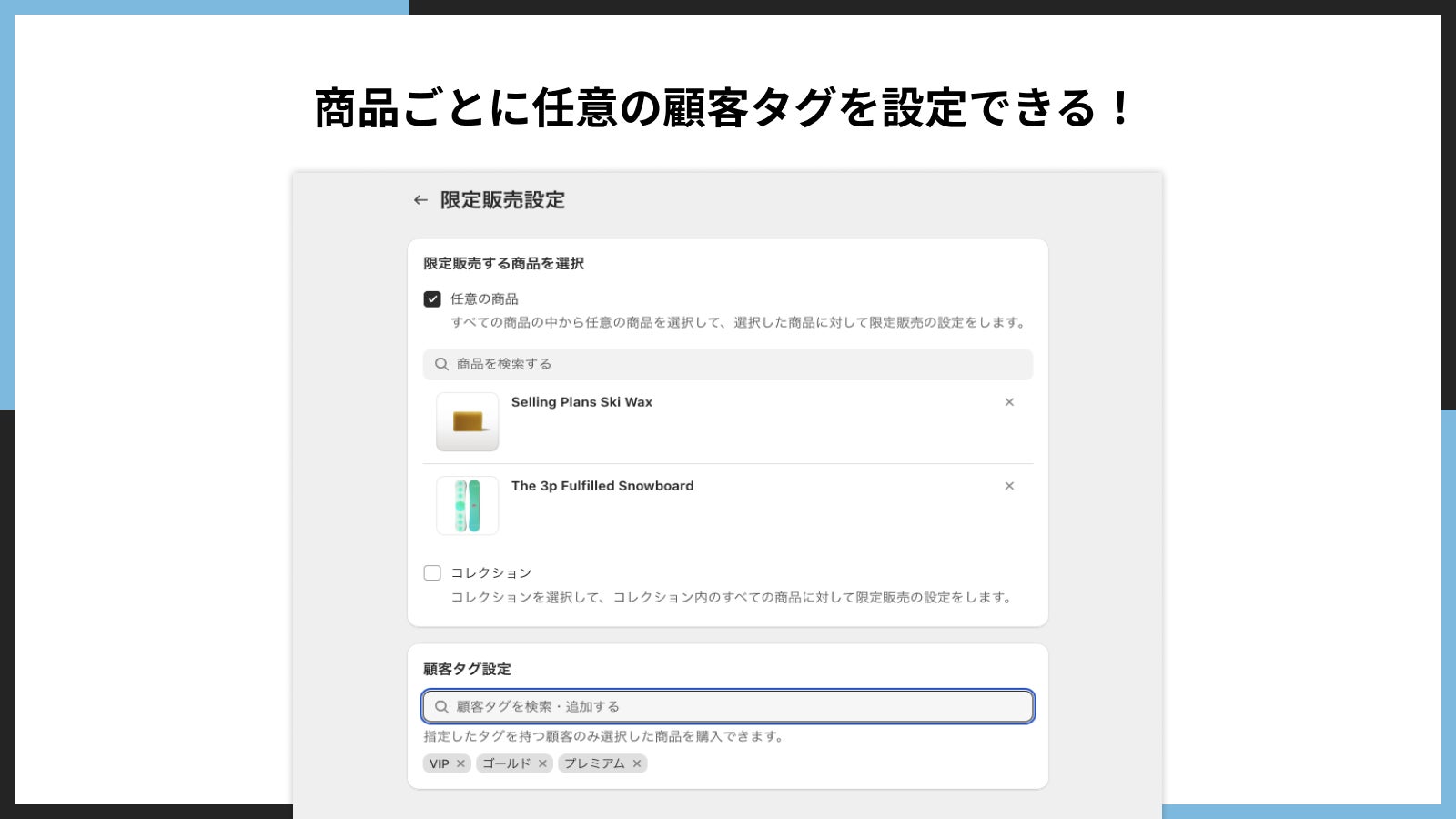 ■商品ごとに特定の顧客タグを持つ顧客への限定販売を設定できる!