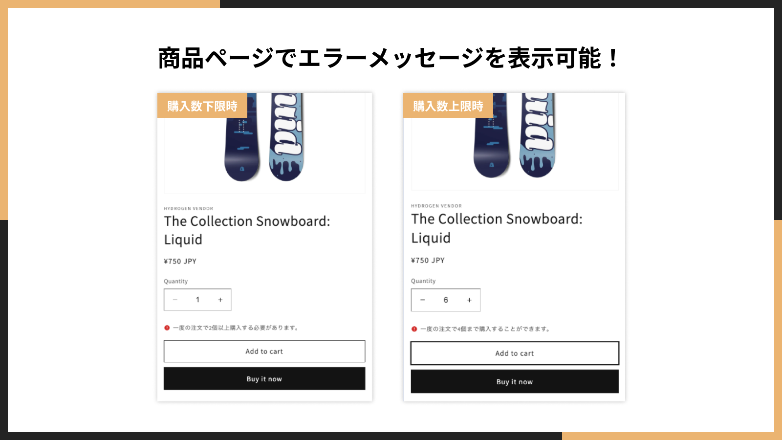 「シンプル顧客タグごとの限定販売|お手軽ロイヤリティ」では、顧客の状況に応じてメッセージをカスタマイズすることが可能です。顧客がログインしていない場合、限定販売の条件を満たすタグを持っていない場合、そして限定販売の条件を満たすタグを持っている場合、それぞれに合わせたメッセージを表示できます。