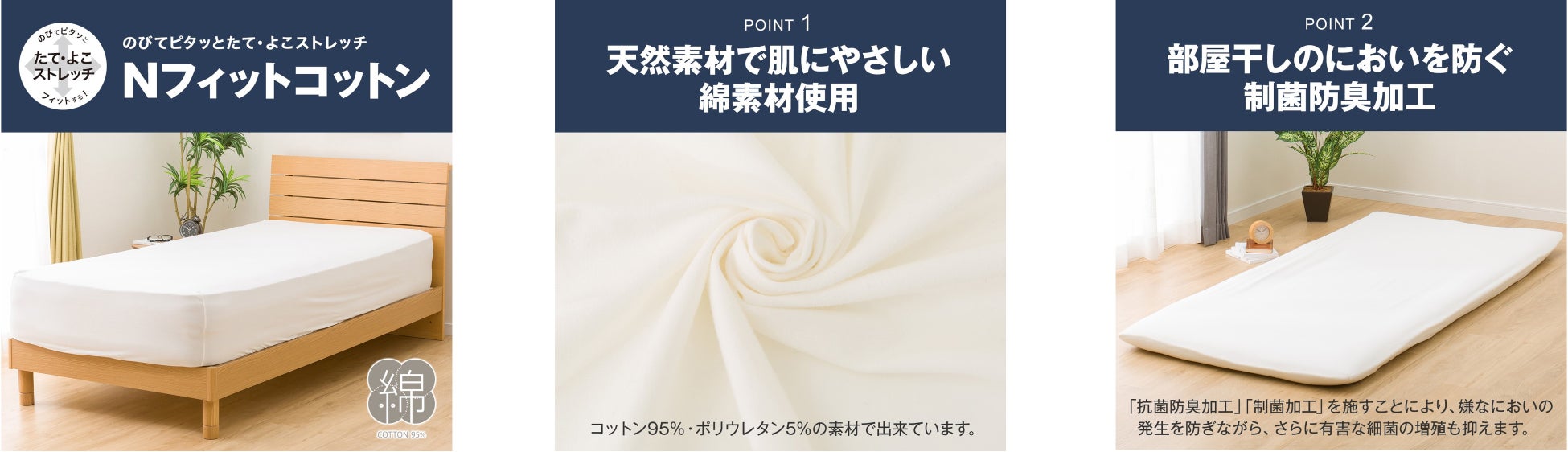 【シリーズ累計販売約260万枚突破】付けるとき・付けたあと「気持ちいい」が持続するシーツ「Nフィット」のコットン素材が5月中旬より全店展開開始!
