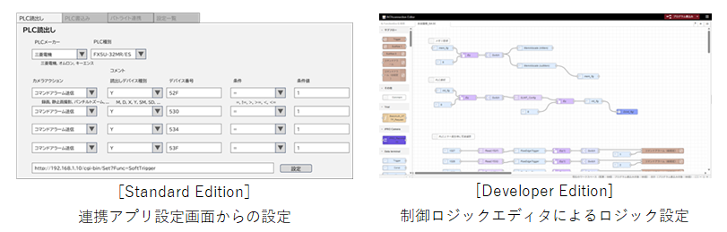 Standard Editionでは、頻繁に使用される基本的な機能(ドライブレコーダーのような機能)を、専門的なエディタ操作なしで設定できます。PLC連携アプリの設定画面から簡単な設定を行うだけで、制御ロジックを直感的に設定できます。