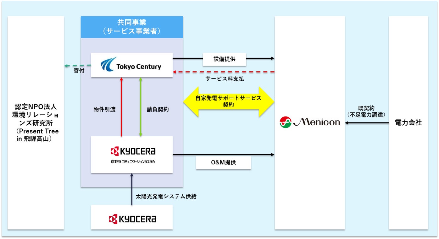 東京センチュリー株式会社(本社:東京都千代田区、代表取締役社長:馬場 高一、以下「東京センチュリー」)と、株式会社メニコン(本社:愛知県名古屋市、代表執行役社長:田中 英成、以下「メニコン」)、京セラコミュニケーションシステム株式会社(本社:京都府京都市、代表取締役社長:黒瀬 善仁、以下「KCCS」)は、SDGs(持続可能な開発目標)の達成に資する、寄付型のコーポレートPPA(自家発電サポートサービス)のサービスを開始いたしました。今後とも、主体的な環境保護への取り組みを通じて、持続可能な社会の実現に貢献してまいります。