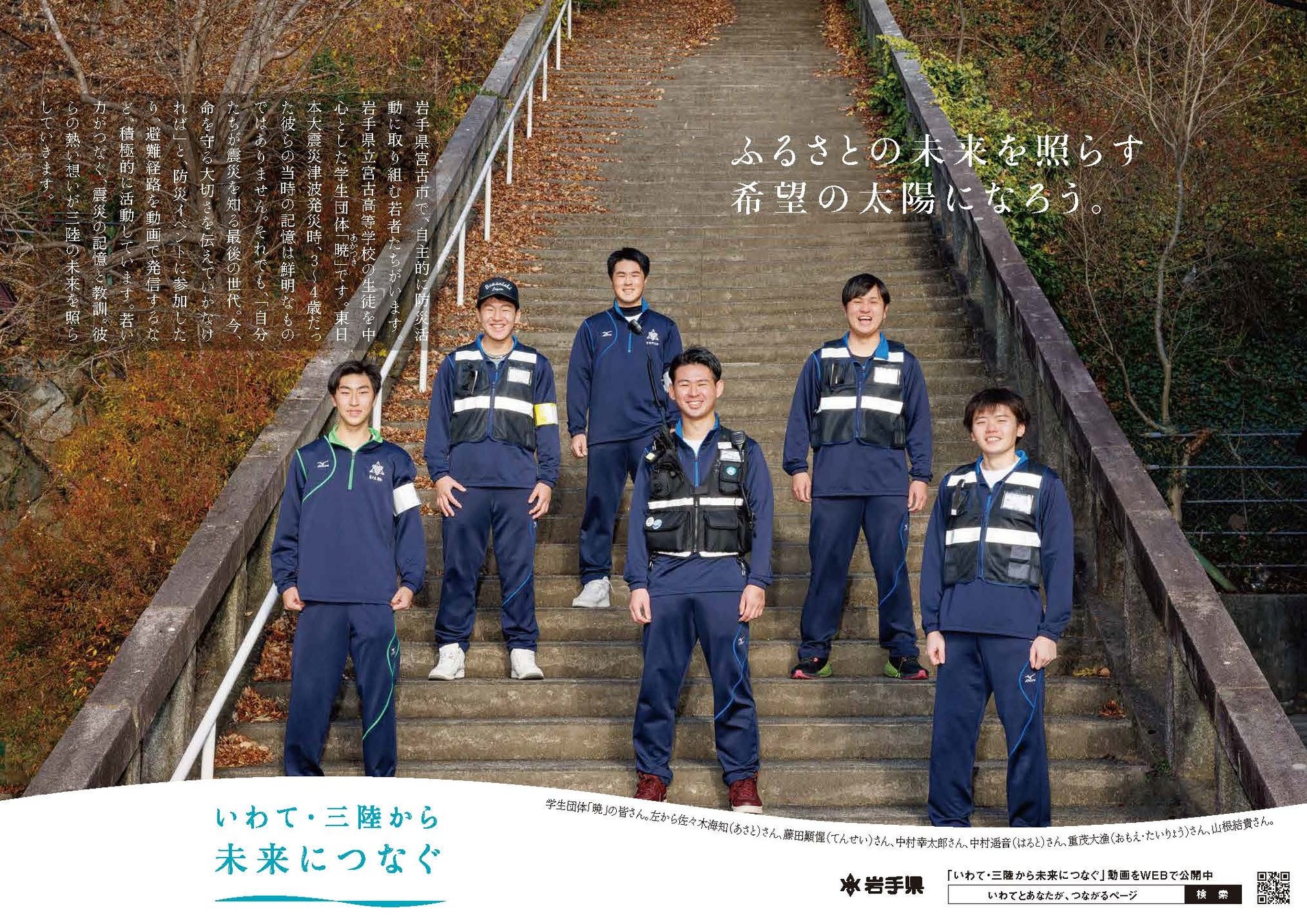 県立宮古高校の生徒を中心に設立された団体が、防災イベントへの参加、避難経路の動画配信などを実施。震災の記憶のない次世代への記憶と教訓の「伝承」。