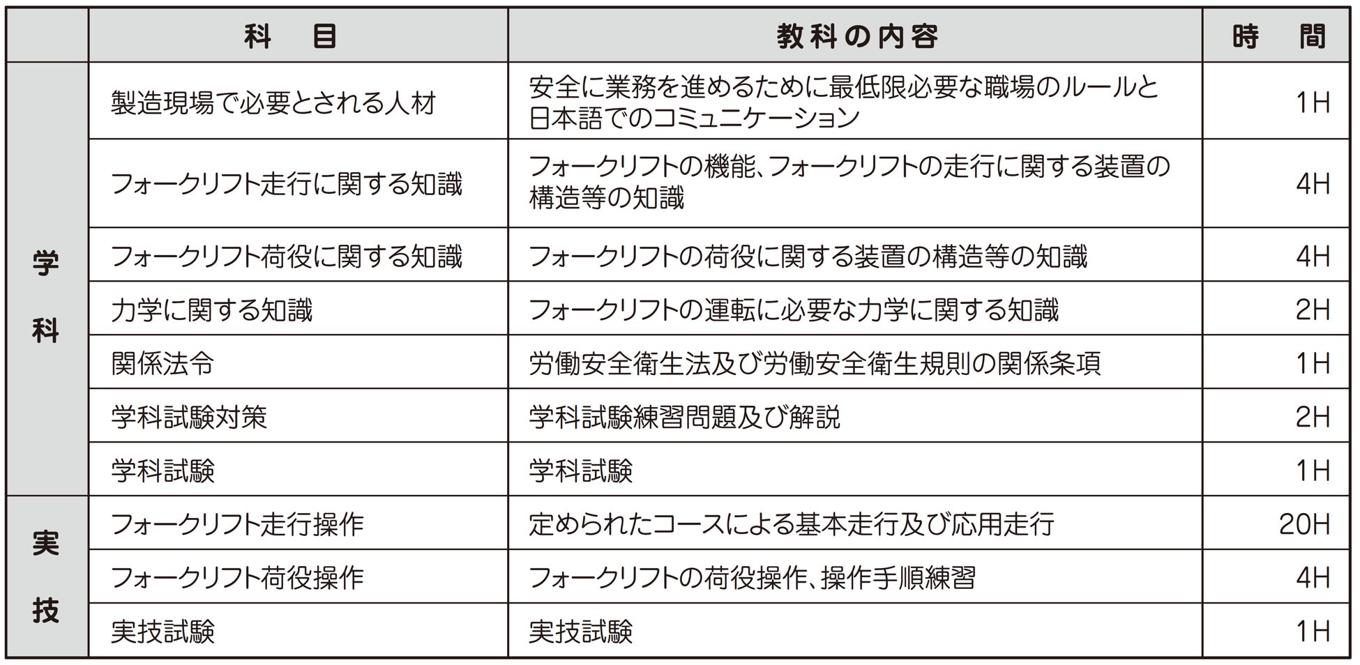 フォークリフト安全作業員養成科