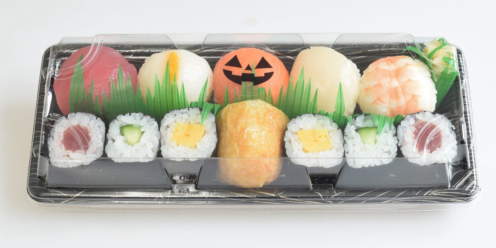 細巻やいなり寿司など一口サイズのお寿司が楽しめる、ハロウィン限定の詰合せです。