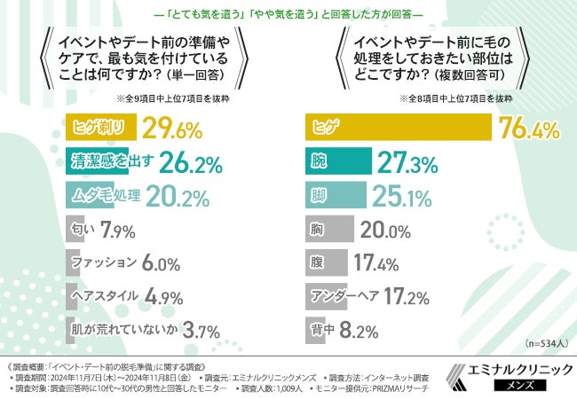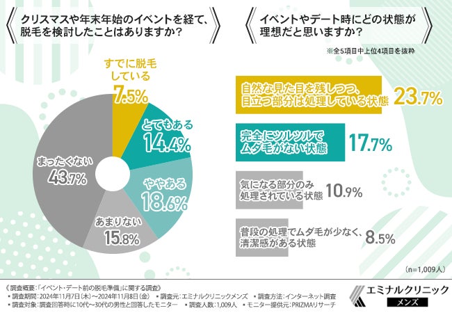 そこで今回、メンズ専用脱毛クリニック・エミナルクリニックメンズは、10代~30代の男性を対象に、「イベント・デート前の脱毛準備」に関する調査を実施しました。