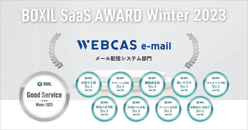 メール配信システム「WEBCAS e-mail」が「BOXIL SaaS AWARD Winter 2023」で「Good Service」に選出