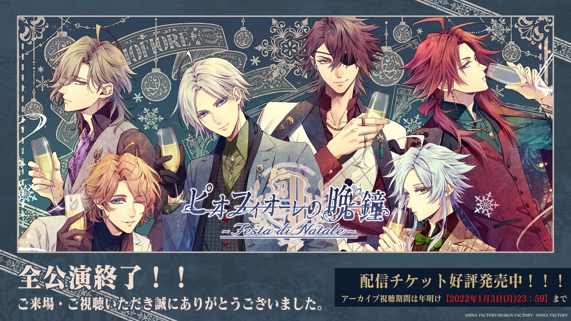 アイディアファクトリー株式会社(代表取締役社長:佐藤 嘉晃/所在地:東京都豊島区)の女性向けゲームブランド「オトメイト」は、2021年12月25日(土)開催された「ピオフィオーレの晩鐘 ~Festa di Natale~」の配信視聴チケットを現在販売しております。