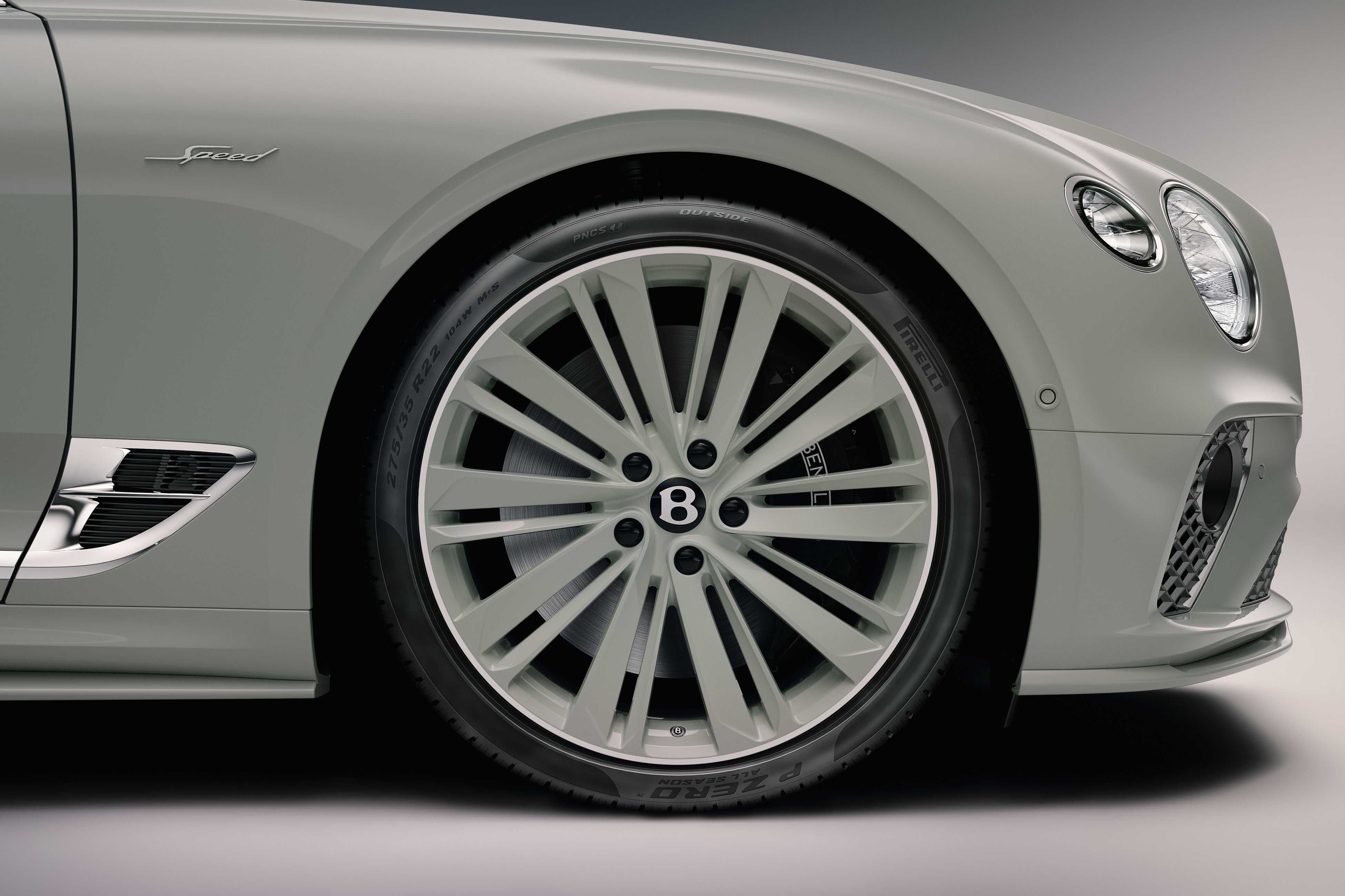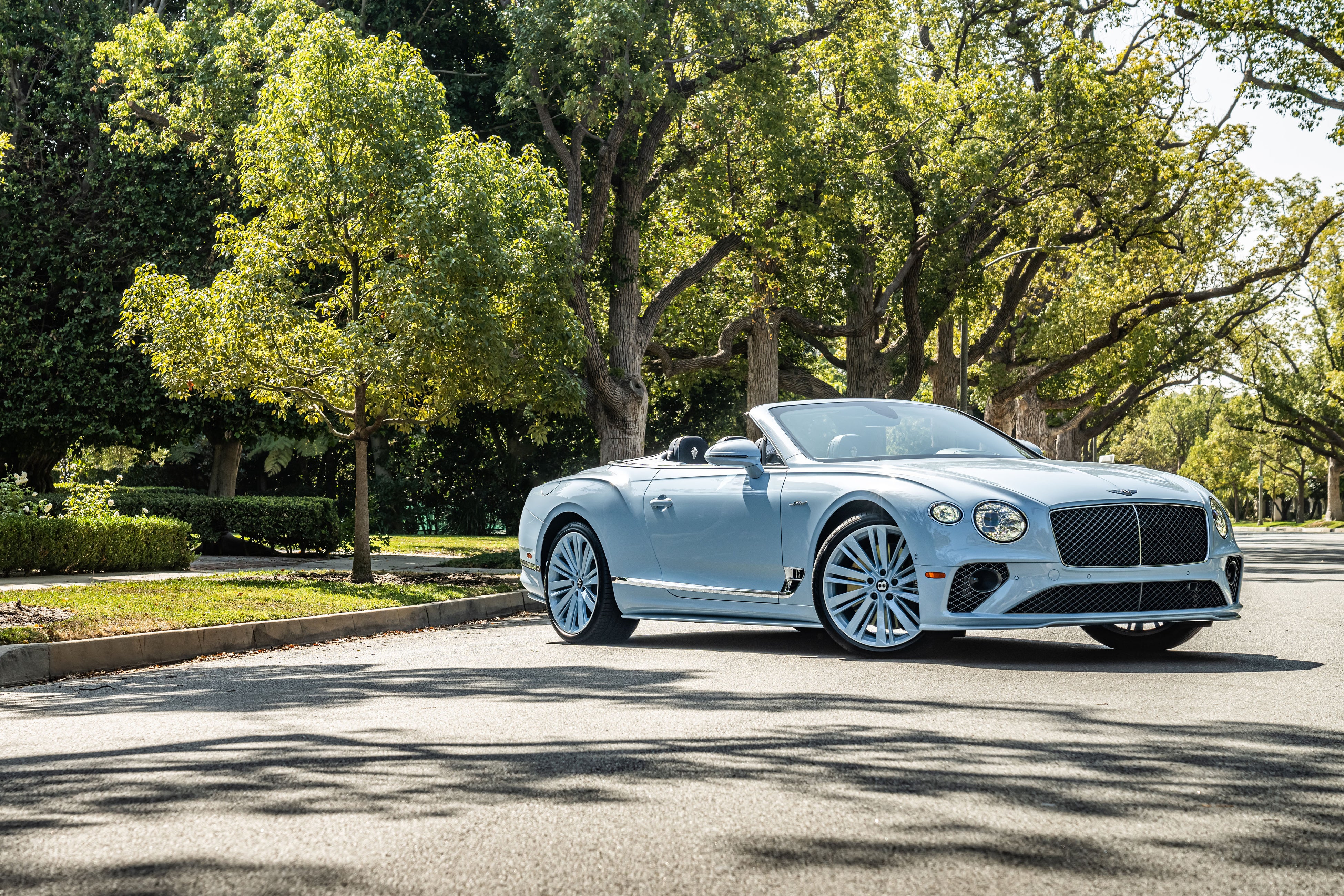 3台のビバリーヒルズ特別仕様車のうち、最初のコンチネンタル GTCスピードは、ボディワークと22インチ10スポークホイールの両方にジェットストリームII仕上げを施し、ホイールエッジにピンストライプがさりげなく入っています。インテリアのハイライトは、リネンのメインハイドとコントラストステッチ、インペリアルブルーのセカンダリーハイドです。ピアノリネンとインペリアルブルーの2色のウッドパネルを採用し、ウエストレールからダッシュボードにかけて光沢のある仕上げとなっています。全モデルにスタイリング、ツーリング、シティモードが搭載され、ハリウッドの黄金時代を彷彿とさせる「The Beverly Hills」の文字が30年代の書体でイルミネーションシルプレートにあしらわれています。
