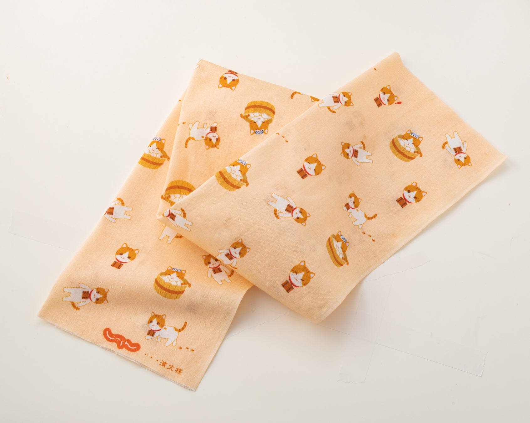 にゃらんデザインのかわいいてぬぐい。使うほどに馴染んでいく風合いは毎年人気のアイテム。2022年は『じゃらん』カラーのオレンジが登場!普段使いにもプレゼントにも!