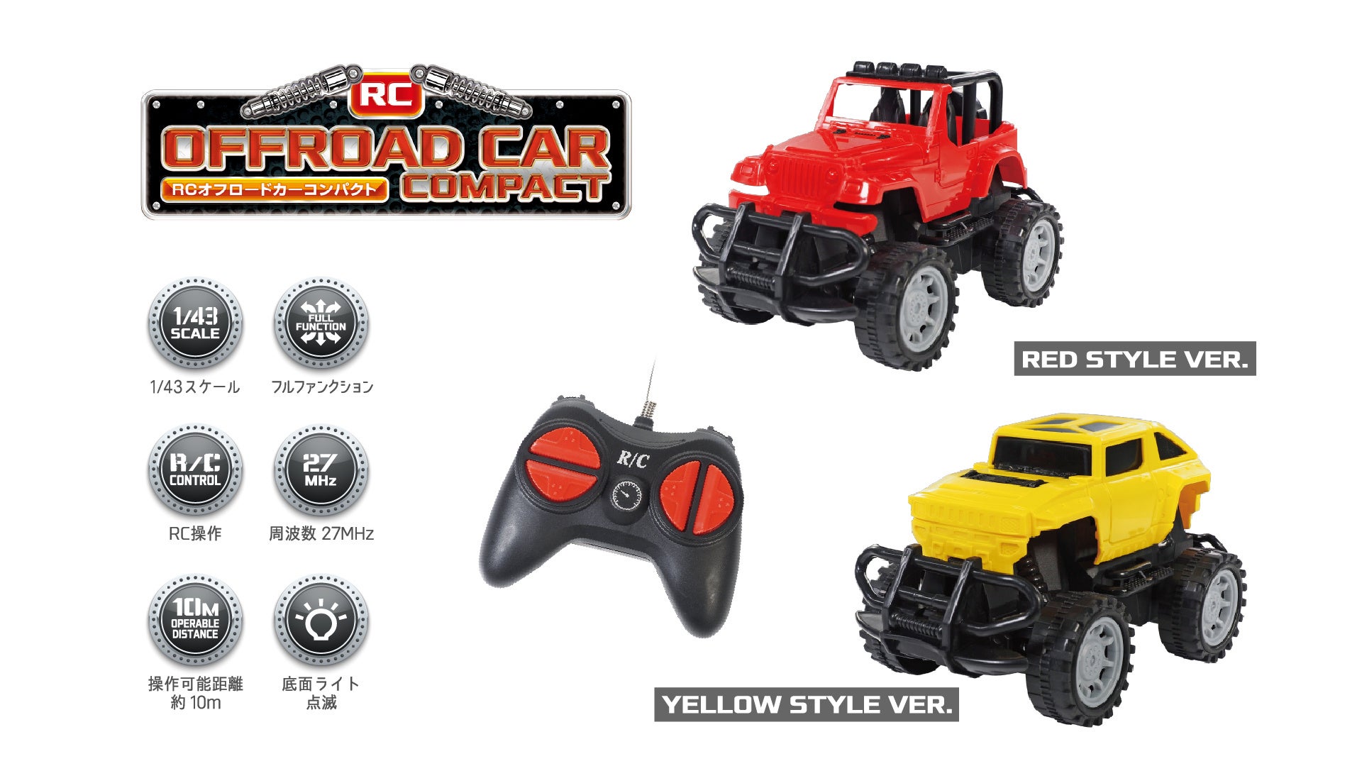 特徴:フルファンクションのオフロード仕様ボディ!コンパクトボディからは考えられないパワフルな走行が楽しめます。コントローラーも簡単操作で遊びやすいので安心して楽しめます。レッドとイエローの2スタイル。