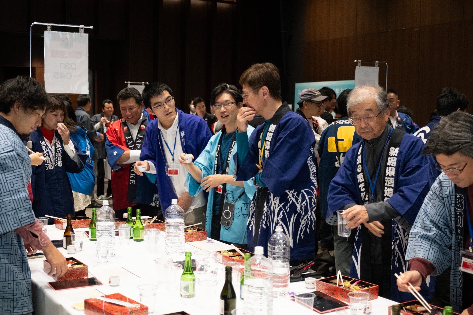 “日本酒”という共通言語のもと、きき酒を通じて年齢などの垣根を超え、全国から集った『第44回全国きき酒選手権大会』。懇親会では、参加者同士がお互いの健闘を讃え合い、きき酒選手権に参加された感想や、さまざまな日本酒に関する情報交換で会話が弾んでいました。