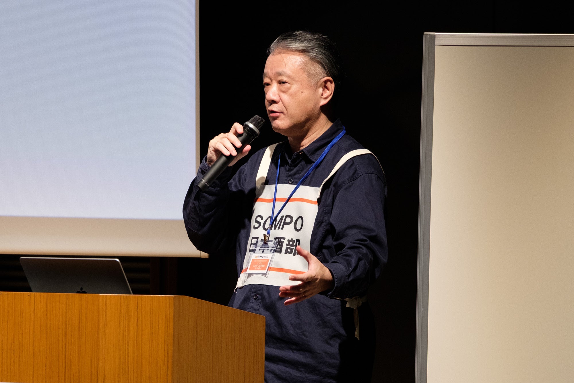 続いて、企業の日本酒部が集まる実業団日本酒部連盟の講演では、佐川 龍一(さがわ りゅういち)さんが登壇しました。社会人日本酒愛好会対抗の部が誕生した経緯、日本酒部の立ち上げの背景、企業内で広がる日本酒部の活動など、情熱あふれる活動について紹介されました。
