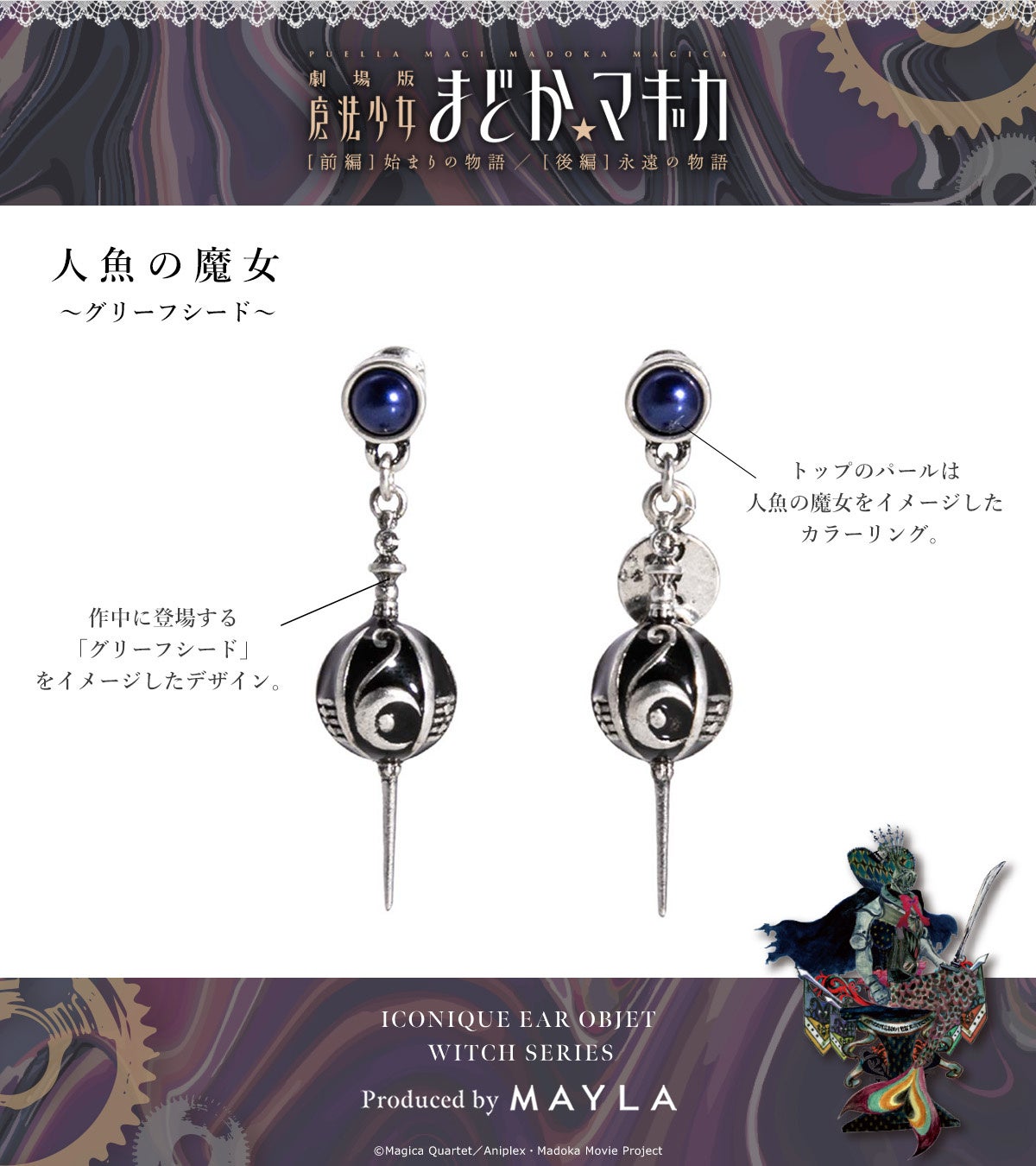 MAYLAより、『魔法少女まどか☆マギカ』魔女とグリーフシードをイメージしたイヤアクセサリーが登場!2024年2月26日(月)17:00より予約販売開始