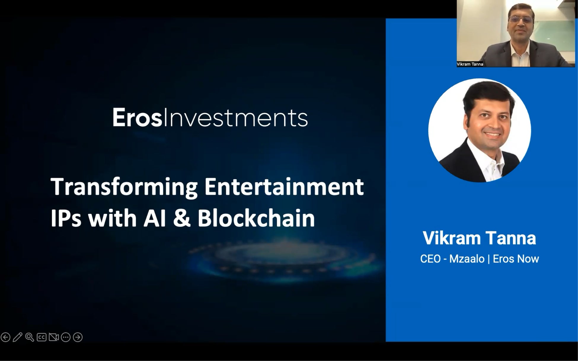 デジタルエンターテイメントとテクノロジーの将来について、特にインドで12,000以上のデジタルコンテンツを保有し、映画等のストリーミングビジネスを展開するEros Investment社がいかにAIとブロックチェーン技術を活用して、新しいビジネス機会を創出し、エンターテイメント業界を変革しているかについてお話いただきました。