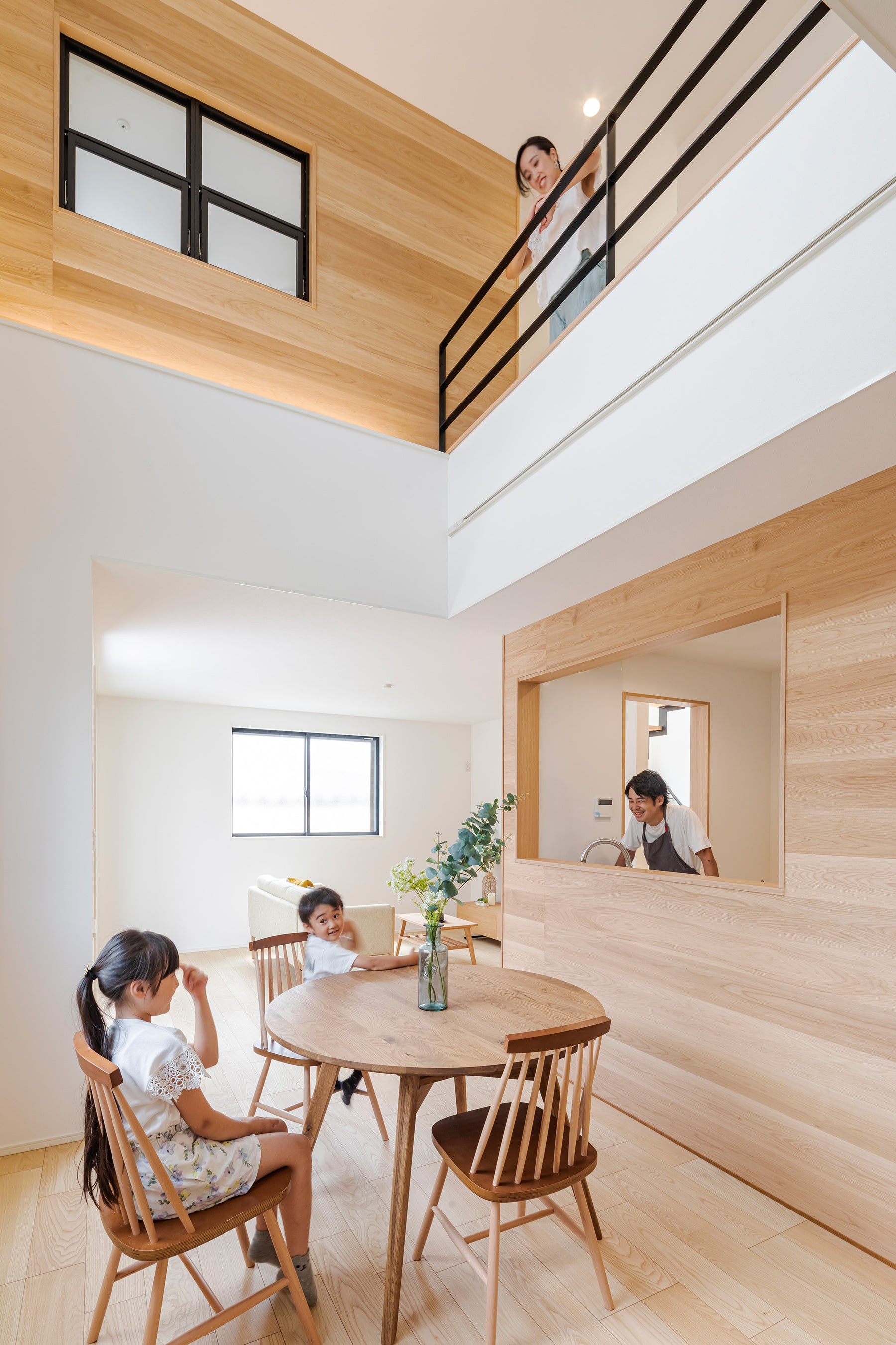 リビング内の余白をセカンドリビングと見立て、それぞれの居場所を完全に隔てることなく、個の空間を保ちます。緩やかに家族と繋がることを叶える空間をもつ住宅を計画しました。