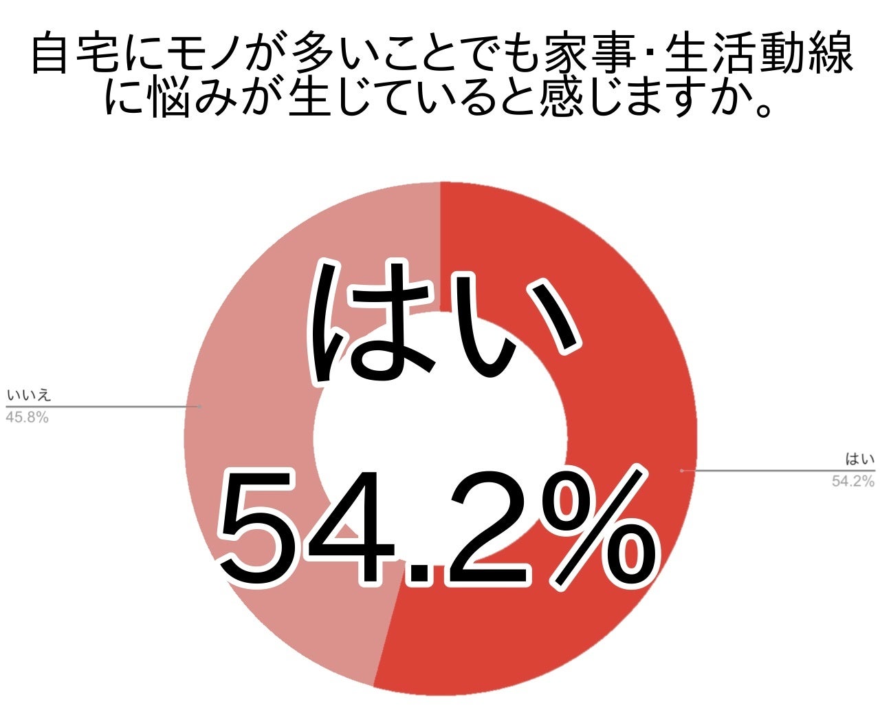 アンケートでは、自宅にモノが多いことでも家事・生活動線に悩みが生じていると感じると答えた方は半数以上(関東54.2%・全国54.0%)でした。