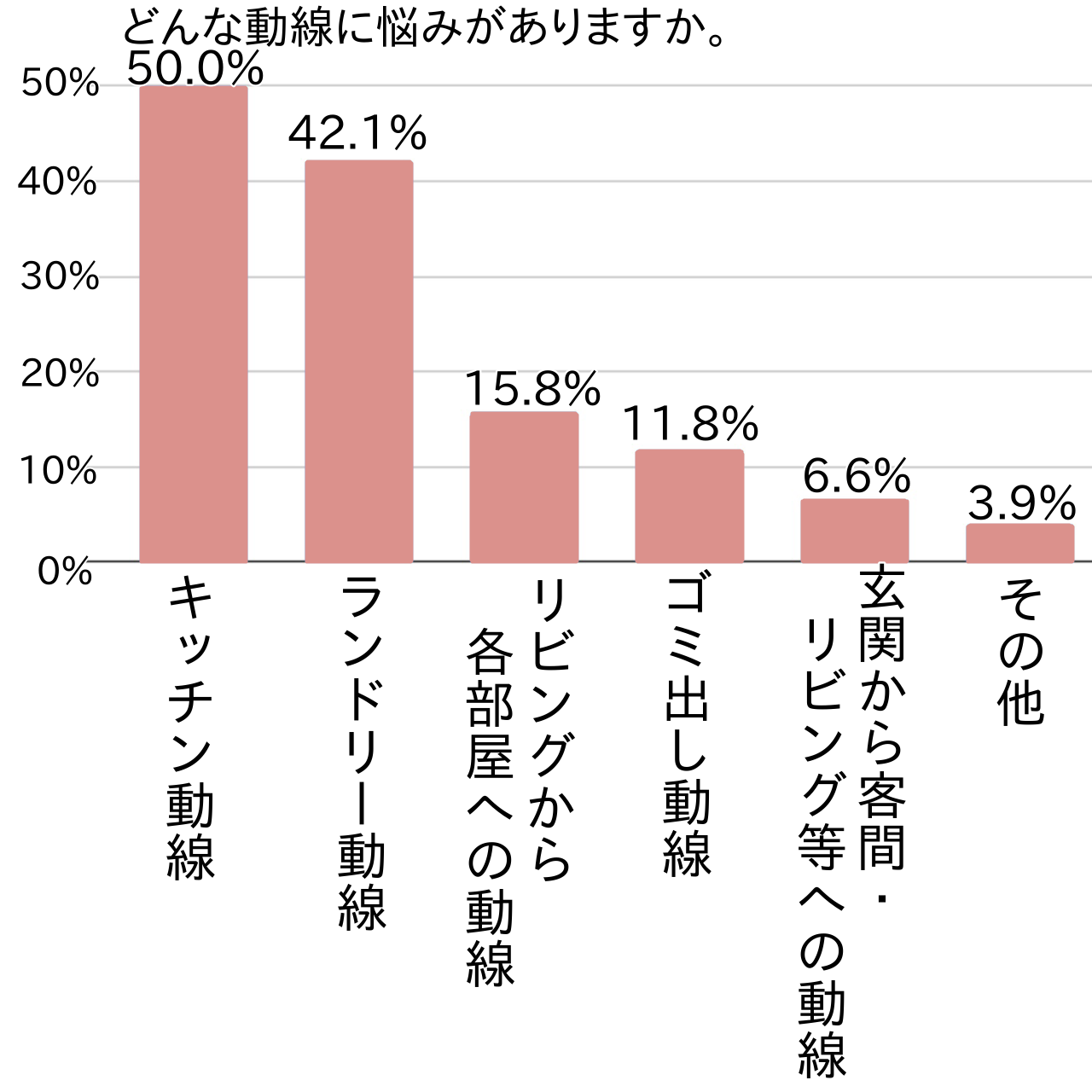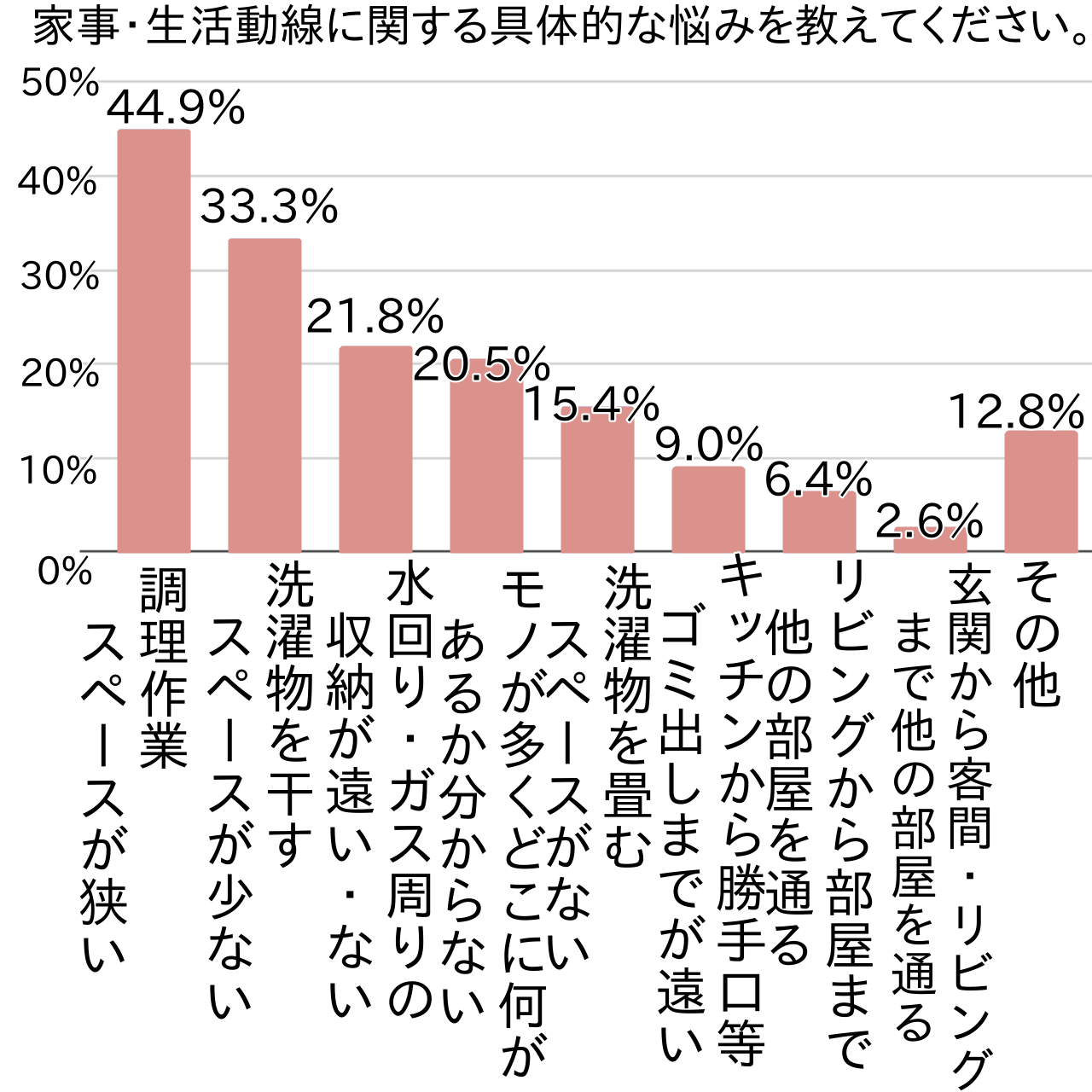 アンケートでは次に、家事・生活動線に関する悩みについて具体的に尋ねてみました。