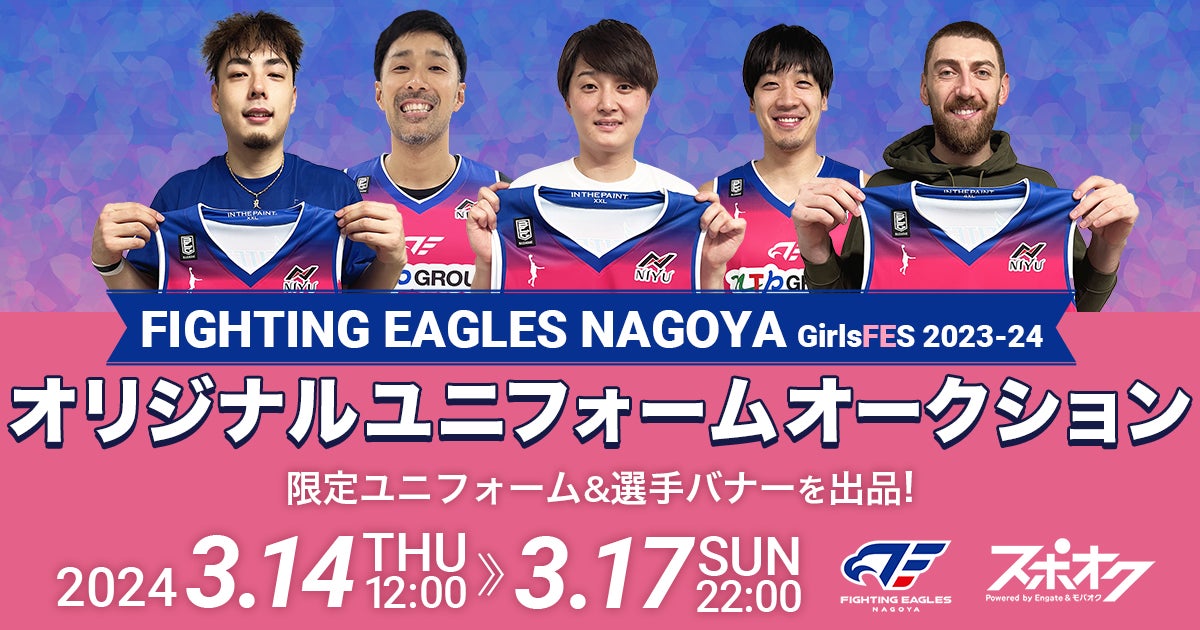 株式会社モバオク(本社:東京都渋谷区、代表取締役社長:生田目 知之、以下モバオク)がエンゲート株式会社(本社:東京都中央区、代表取締役:城⼾ 幸⼀郎、以下エンゲート)と業務提携し提供するスポーツチーム公式オークションサービス「スポオク」にて、B.LEAGUE所属のファイティングイーグルス名古屋が実施する「ファイティングイーグルス名古屋 ガールズFES 2023-24 オリジナルユニフォームオークション」を2024年3月14日(木)から開始します。