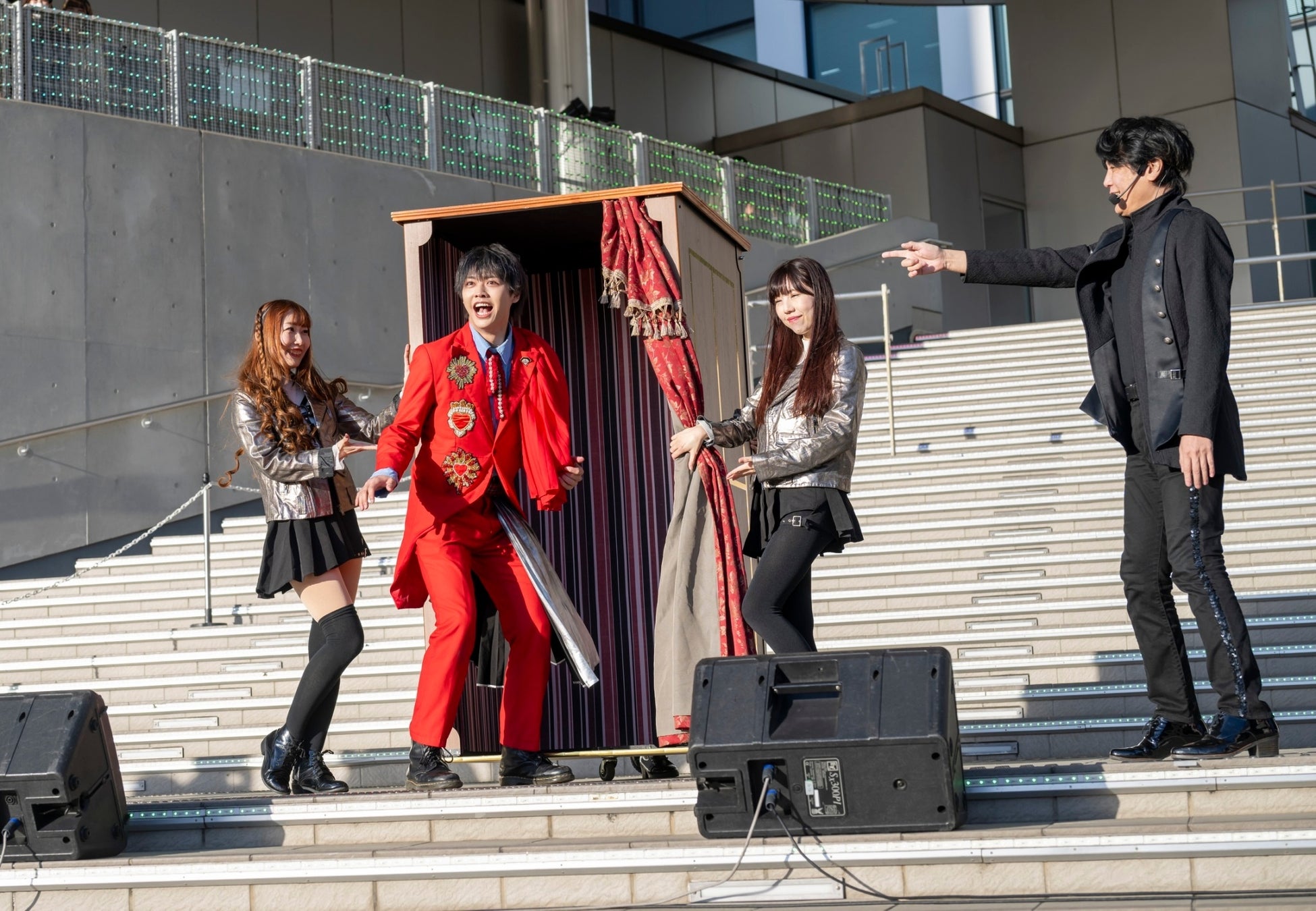 オープニングは、世界で活躍するイリュージョニスト・MAGUSとのスペシャルコラボレーションが実現しました。メンバーの古川流唯が、箱の中からイリュージョンによって登場し、会場が驚きに包まれました。