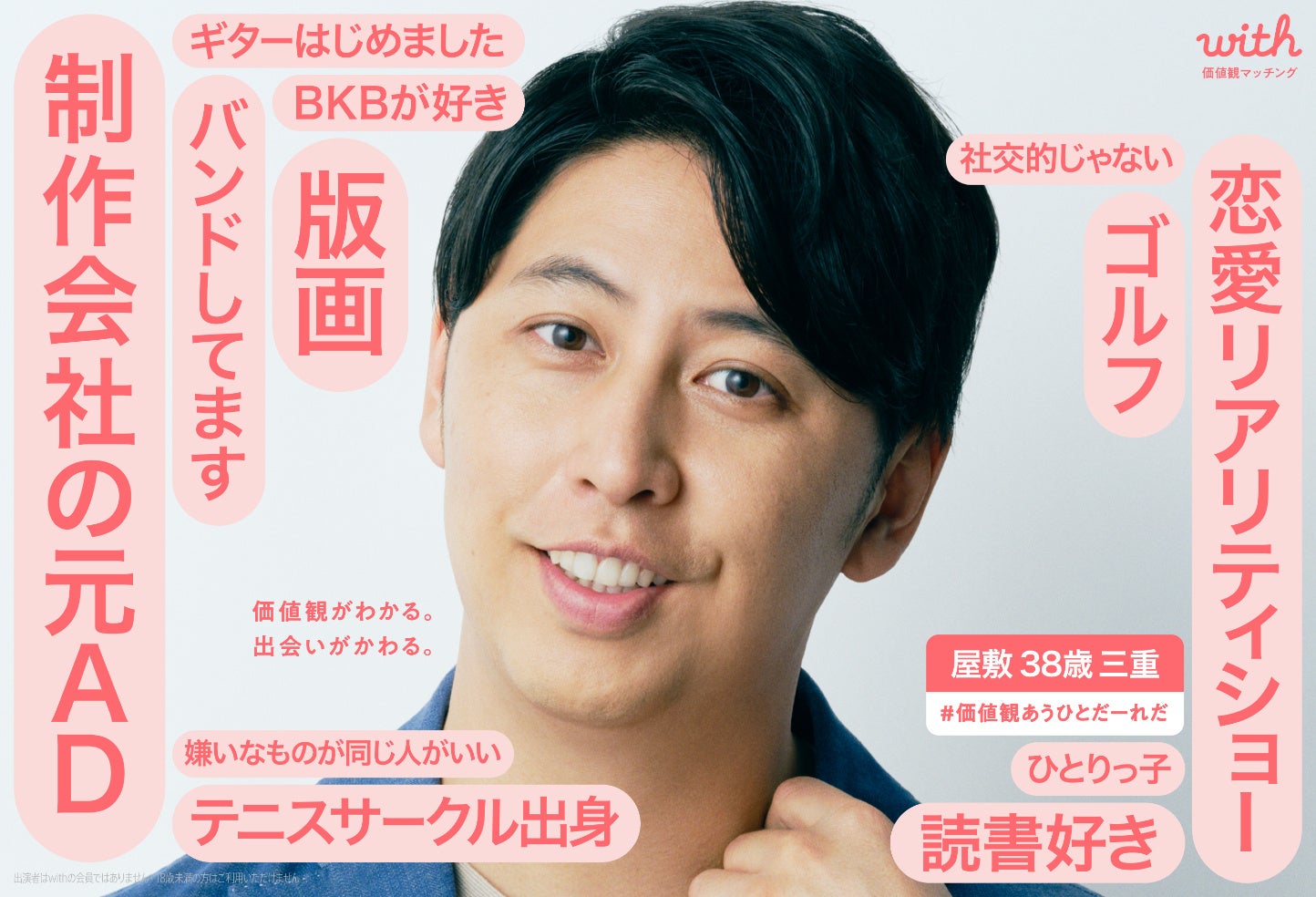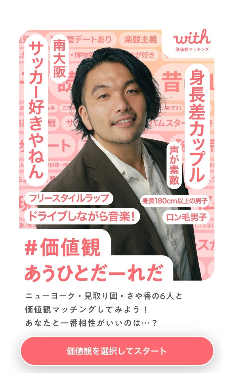 『with』では、この「価値観がわかる。出会いがかわる。」キャンペーンを通じて、20代の皆さまが良縁につながる出会いのヒントを得られるよう、さまざまな体験やコンテンツを通じて出会いにおける価値観の重要性をお伝えしてまいります。