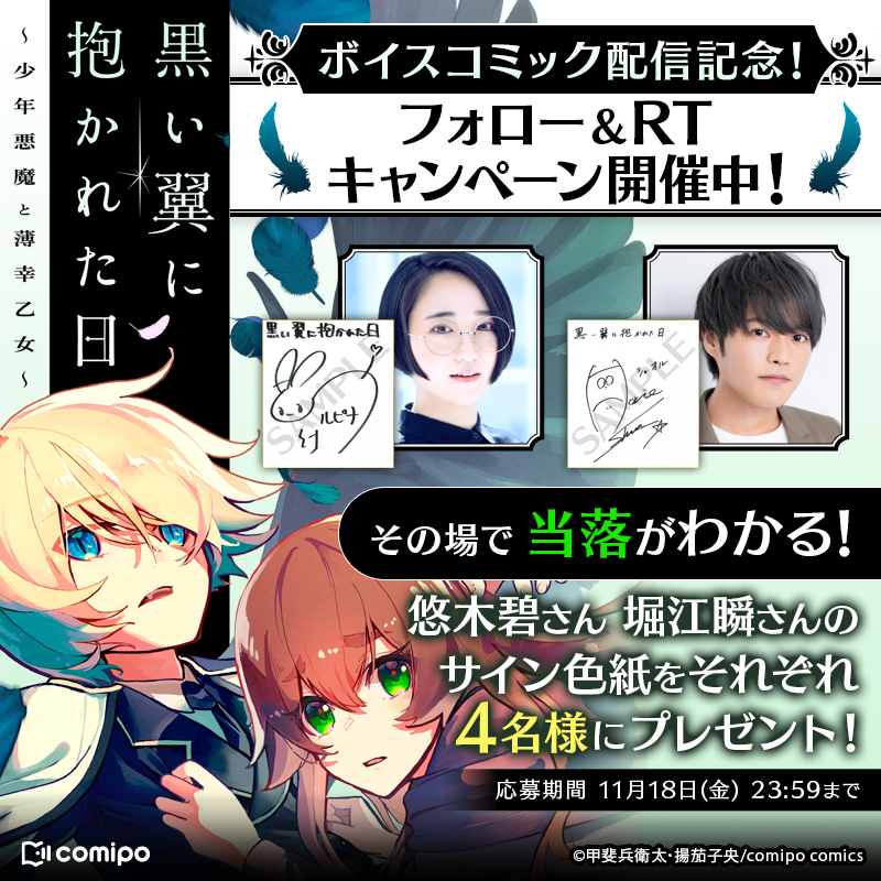 優しい少女と悪魔が紡ぐ「黒い翼に抱かれた日 ~少年悪魔と薄幸乙女~」、聴いて楽しむマンガアプリ『comipo』で電子コミックとボイスコミックを同時配信! 悠木碧さん、堀江瞬さんが共演