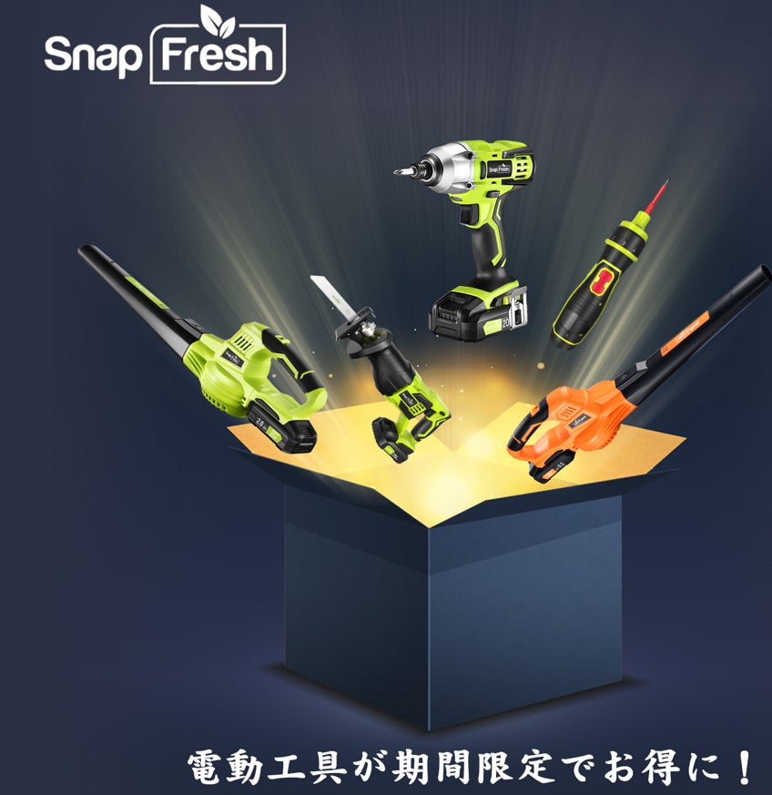 - SnapFresh充電式ブロワーは、強力な風を必要な場所に吹き出し、落ち葉やホコリ、水滴などを吹き飛ばすことが出来る便利なツールです。