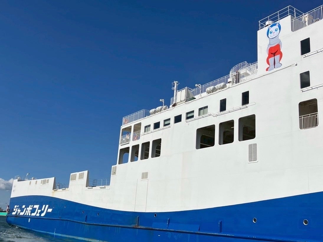 神戸-小豆島-高松を結ぶジャンボフェリー株式会社(兵庫県神戸市、社長 山神正義)は、ヤノベケンジ氏による瀬戸内国際芸術祭作品《SHIP’S CAT(Boarding)》をモチーフにしたオリジナルイラストの船体ラッピングを始めました。