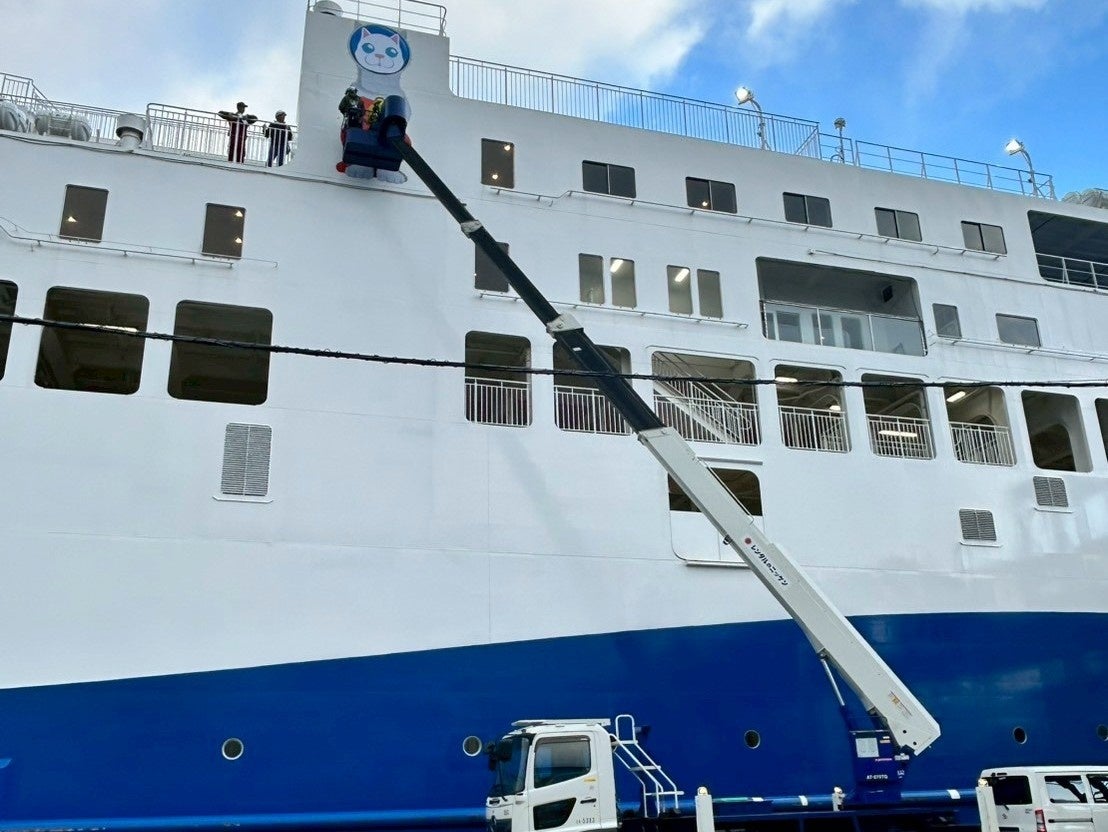 このラッピングは、4月16日にジャンボフェリー「あおい」船内で公開される《SHIP’S CAT(Boarding)》に先駆け、“SHIP’S CAT特別企画”の第一弾として実施されたものです。