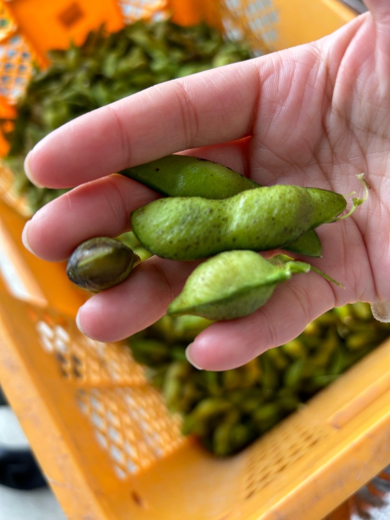 お正月の煮豆に使う丹波黒大豆の熟成途中の枝豆。