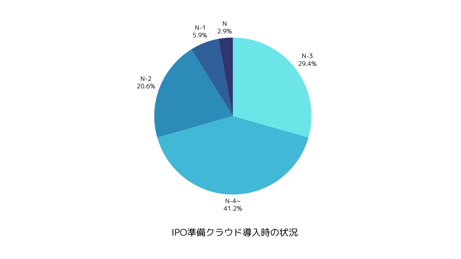IPO(新規上場)目標年をN期として、その4期以上前(N-4期)に「IPO準備クラウド」を導入した企業が全体の41.2%で、次いで3期前(N-3期)の企業が29.4%でした。