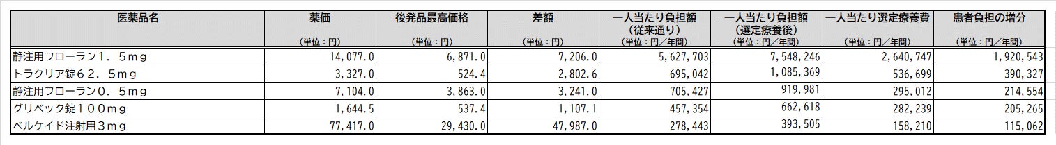 医療費の負担について、全ての患者が長期収載品の継続を希望した場合を仮定し調査しました。